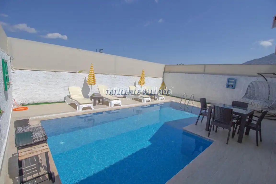 2 yatak odası ve 4 kişilik konaklama kapasitesi ile villa, aileler ve arkadaş grupları için ideal bir seçenektir. Tek katlı yapısı, geniş iç mekanları ve ferah yaşam alanları ile konforlu bir tatil sunan villamız, özellikle çocuklu aileler için son derece uygundur. Villa, özel yüzme havuzu ve geniş bir terasa sahip olup, burada ailenizle birlikte güvenle vakit geçirebilir, güneşin tadını çıkarabilirsiniz. İç ve dış mekanlarının özenle dekore edilmesi, her türlü ihtiyacınızı karşılamak için düşünülmüştür.