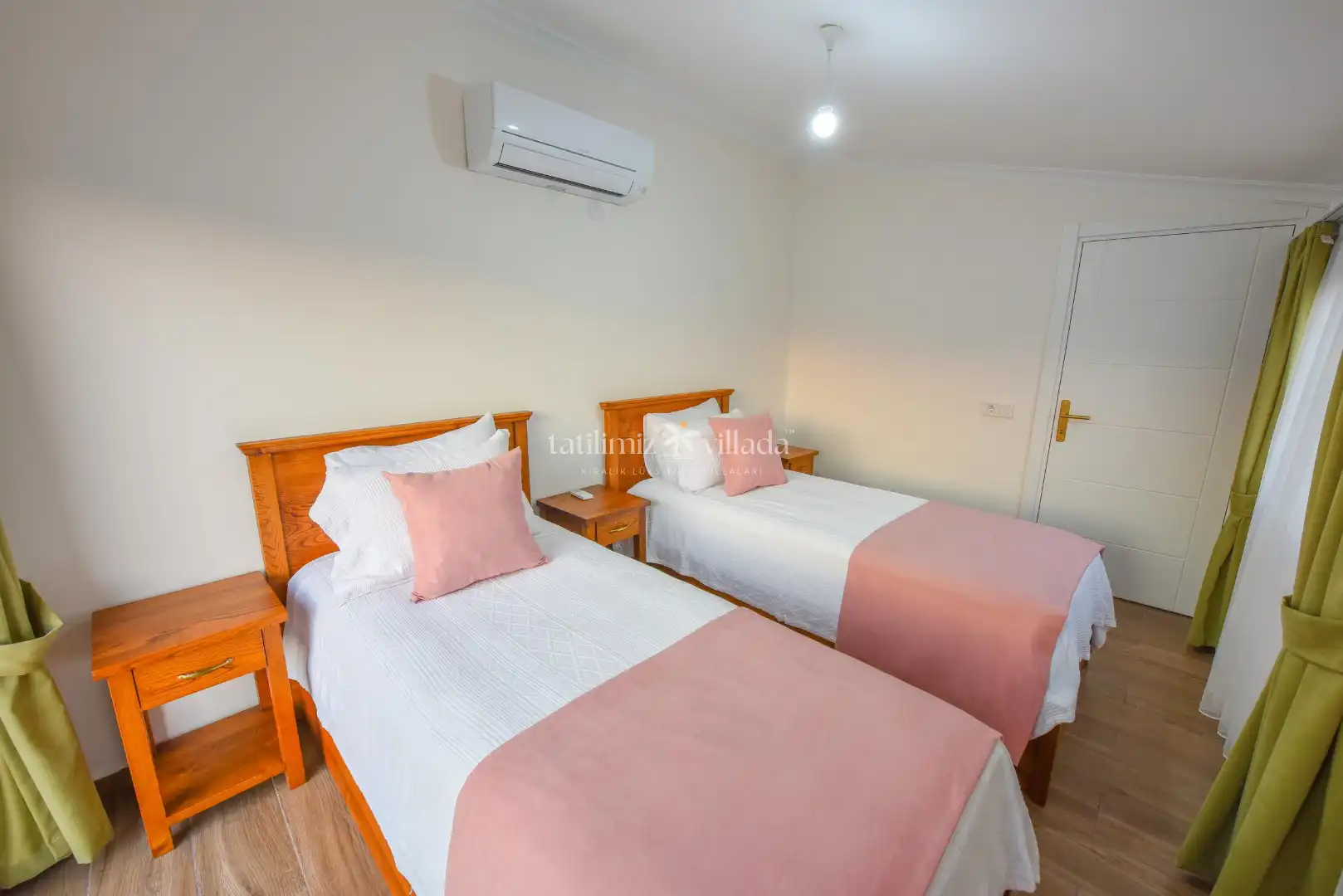 Gökkuşağı Villa, tasarımında kullanılan yüksek kaliteli malzemeler ve her detayıyla öne çıkıyor. Triplex olarak tasarlanmış olan villa, üç katlı geniş bir yaşam alanına sahip. Bu tasarım, konaklayan misafirlere hem geniş bir yaşam alanı hem de mahremiyet imkanı sunuyor. 4 yatak odası, 2 oturma odası, modern bir mutfak, yemek alanı ve geniş bir terasla, 7 kişilik konaklama kapasitesine sahip olan villa, kalabalık grupların veya geniş ailelerin rahatça konaklayabileceği bir alan sunuyor.