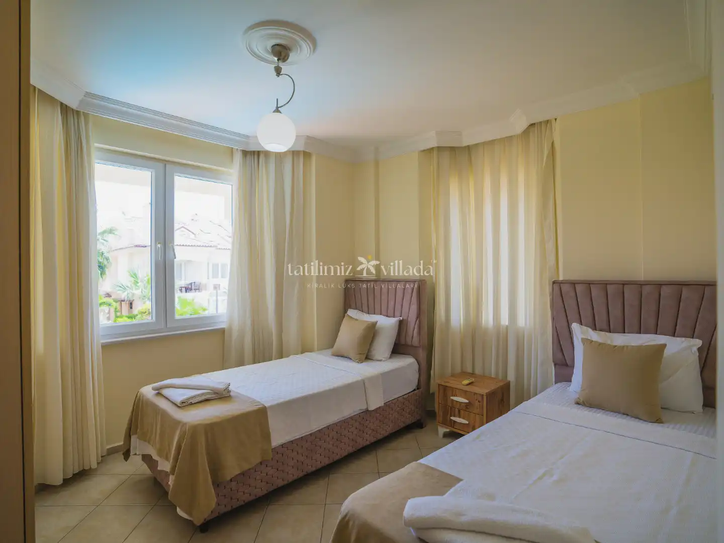 Fethiye Çalış bölgesinde, denize sıfır konumda yer alan Golden Pearl 4, SunSet Beach Club sitesi içerisinde konumlanmış özel bir tatil villasıdır. 4 yatak odasına sahip olan villa, özel yüzme havuzu ve geniş bahçesi ile kalabalık aileler ve arkadaş grupları için konforlu bir konaklama imkanı sunar. Modern tasarımı ve ferah yaşam alanları ile denize yürüme mesafesinde keyifli bir tatil deneyimi sağlar.