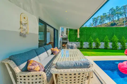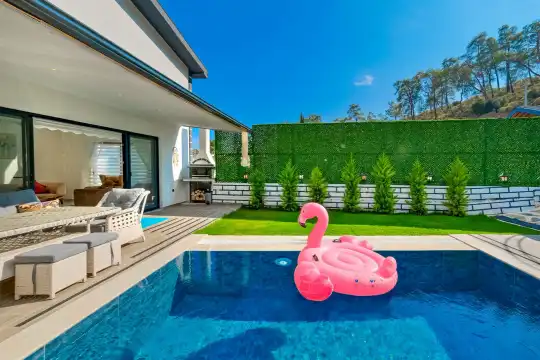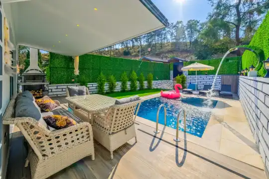 Villamızın en dikkat çeken özelliklerinden biri tamamen korunaklı yapıya sahip özel yüzme havuzu. Dışarıdan görünmeyecek şekilde tasarlanan bu alan, özellikle muhafazakâr tatil anlayışına uygun bir atmosfer sunarken, aynı zamanda konuklara maksimum mahremiyet ve konfor sağlıyor. Geniş bahçesi, yemyeşil çevresi ve doğayla iç içe konumu sayesinde misafirler huzurlu bir tatil geçirirken, şehir hayatının stresinden tamamen uzaklaşma imkânı buluyor.