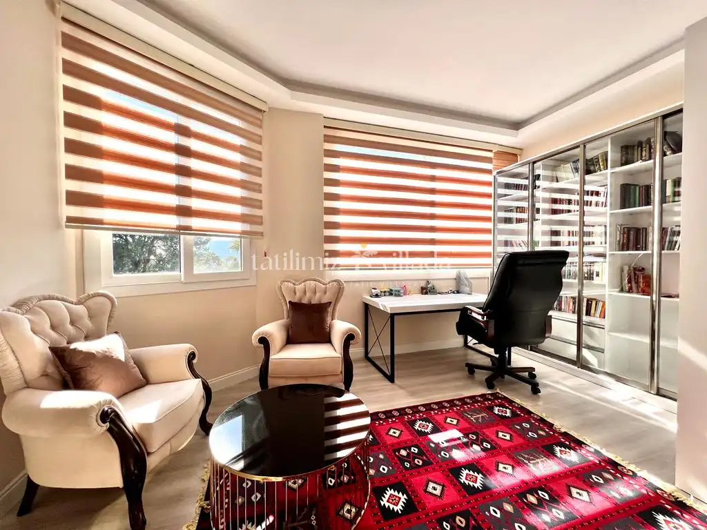 Özenle düzenlenmiş özel bahçesinde çeşitli meyve ağaçları ve bitkiler yer almakta olup, veranda ve açık yemek alanı sayesinde doğayla iç içe yemek keyfi yaşayabilirsiniz. Bahçenin arka bölümünde bulunan ibadet odası, misafirlerin ihtiyaçları düşünülerek tasarlanmıştır. Ayrıca villada 4 araca kadar özel otopark alanı mevcuttur.