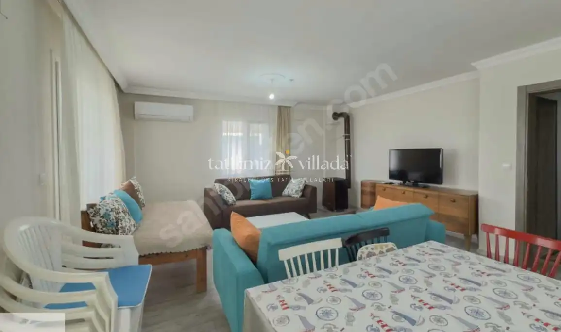 Villamız, ferah yaşam alanları ve kullanışlı yapısıyla misafirlerine rahat bir tatil deneyimi sağlamaktadır. Gün ışığını bolca alan iç mekânları, sade ve şık şekilde döşenmiş salonu ve ihtiyaç duyulan tüm ekipmanlara sahip mutfağı ile ev konforunu aratmayan bir ortam sunar. Odalar rahatlığı ön planda tutacak şekilde düzenlenmiş olup uzun süreli konaklamalar için de uygundur.