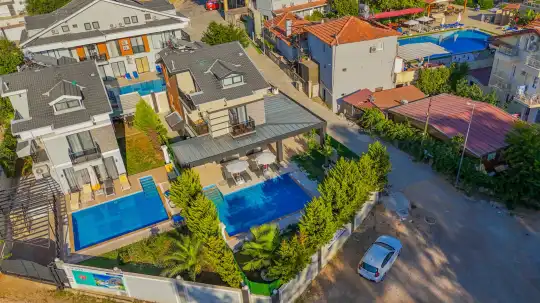 Özel yüzme havuzuna sahip olan Villa Güneş Fa’nın havuz başı ve bahçe alanı da oldukça geniştir. Güneşlenme alanları, şezlonglar ve oturma grupları ile donatılan dış mekanda, gün boyu güneşin ve temiz havanın tadını çıkarabilirsiniz. Villamızın bulunduğu konum itibarıyla hem doğa ile iç içe huzurlu bir ortamda tatil yapabilir hem de Fethiye merkezine, Ölüdeniz Plajı'na ve diğer turistik noktalara kolaylıkla ulaşım sağlayabilirsiniz.