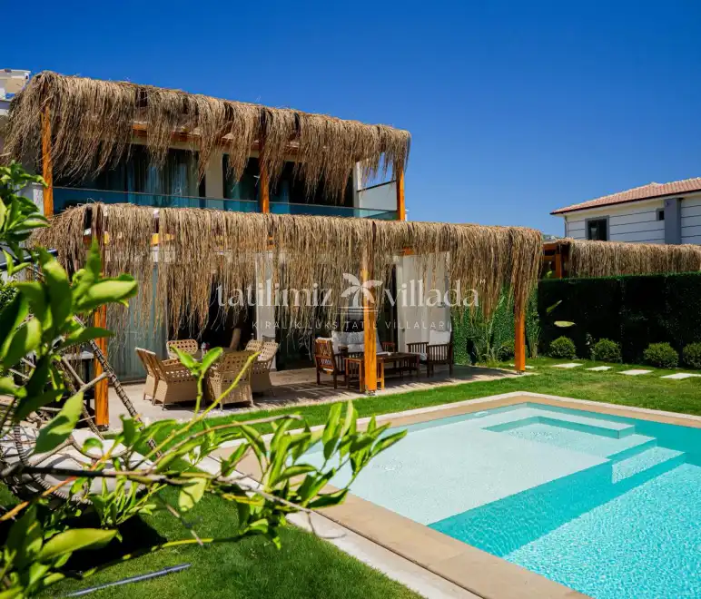 Villanın en dikkat çekici özelliklerinden biri, tamamen size özel özel yüzme havuzudur. Günün her saatinde dilediğiniz gibi serinleyebilir, güneşin ve Marmaris’in eşsiz havasının tadını çıkarabilirsiniz. Havuz başında sevdiklerinizle keyifli vakit geçirirken, tatilinizi kalabalıktan uzak ve özgür bir şekilde yaşama fırsatı bulursunuz.
