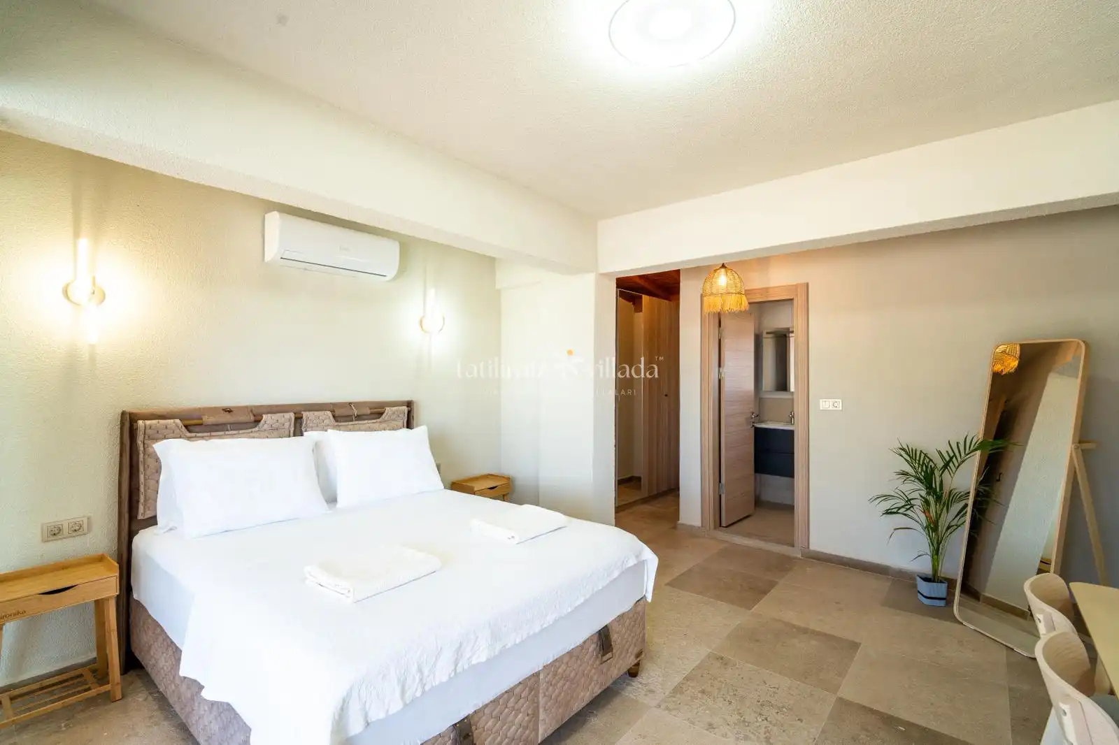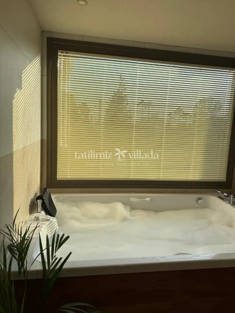 Yatak odalarından birinde bulunan jakuzi, villaya ayrı bir lüks ve ayrıcalık katar. Günün yorgunluğunu atmak, romantik ve rahatlatıcı anlar yaşamak isteyen misafirler için ideal bir detaydır. Diğer odalar da konforlu yatakları ve modern dizaynı ile rahat bir uyku deneyimi sunar.