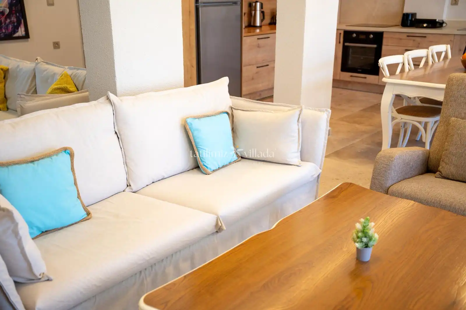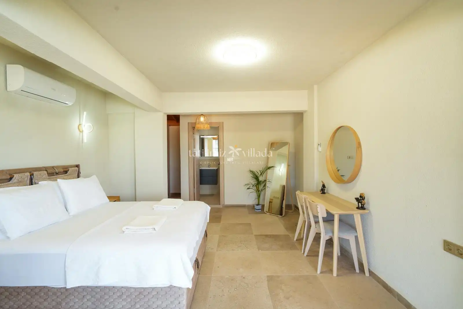 Villa Hannah Montana, modern ve şık dekorasyonu ile estetik ve konforu bir arada sunar. Özenle döşenmiş salonu, geniş oturma alanı ve aydınlık yapısıyla evinizdeymiş gibi hissettirir. Tam donanımlı mutfağı sayesinde kendi yemeklerinizi kolaylıkla hazırlayabilir, keyifli sofralar kurabilirsiniz.