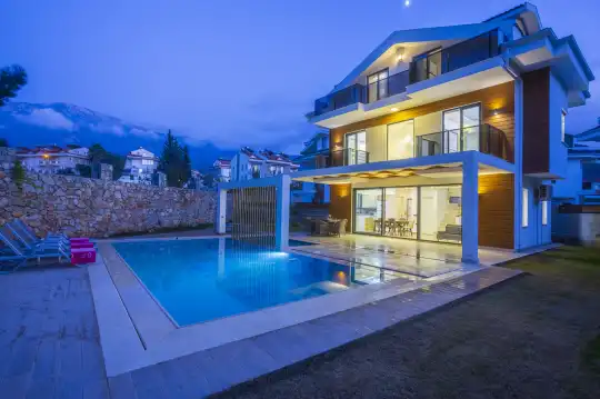 Villa Prestige D, Fethiye’nin en çok tercih edilen tatil bölgelerinden biri olan Hisarönü mevkiinde yer alan modern ve geniş yapısıyla öne çıkan bir villadır. 4 yatak odası ve 1 salona sahip olan villamız toplamda 8 kişilik konaklama kapasitesi sunmakta olup hem kalabalık aileler hem de arkadaş grupları için oldukça idealdir. Şık ve ferah tasarıma sahip iç mekânları, kullanışlı oda düzeni ve tatil boyunca ihtiyaç duyabileceğiniz donanımlarıyla sizlere konforlu bir konaklama deneyimi yaşatır.