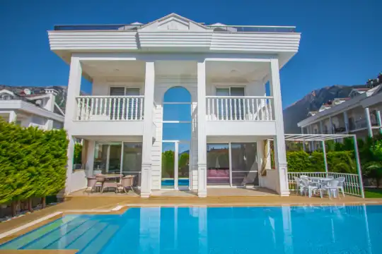 Hisaran B, Fethiye’nin en popüler bölgelerinden biri olan Hisarönü merkezine oldukça yakın konumuyla misafirlerine hem kolay ulaşım hem de huzurlu bir konaklama deneyimi sunan modern ve geniş bir 4+1 villadır. Geniş aileler ve arkadaş grupları için ideal olan bu villa, konforu ön planda tutan mimarisi ve ferah yaşam alanlarıyla dikkat çeker. Villanın içinde yer alan açık plan salon ve mutfak bölümü, misafirlere ev rahatlığında bir kullanım alanı sağlar. Modern mutfak donanımı sayesinde tatil boyunca ihtiyaç duyulabilecek tüm ekipmanlara kolayca ulaşabilir, geniş ve aydınlık salonunda keyifli vakit geçirebilirsiniz.