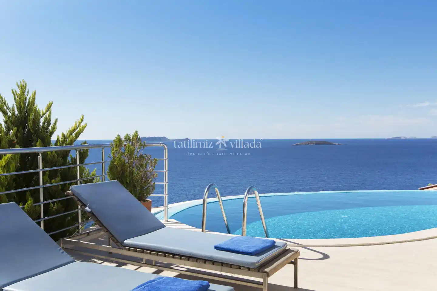 Villa içerisinde yer alan çocuk havuzu, çocuklu aileler için ekstra güvenlik ve eğlence imkânı sunar. Geniş teras alanı, özel yüzme havuzu ve deniz manzaralı oturma alanları ile gün boyu keyifli vakit geçirebilir, Kaş’ın eşsiz gün batımını sevdiklerinizle birlikte izleyebilirsiniz.