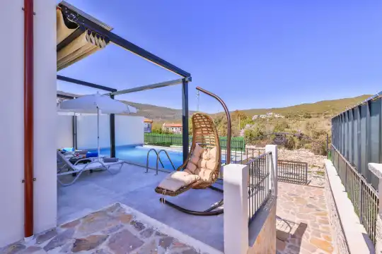 Villa Kakule, Antalya’nın Kaş ilçesine bağlı Çukurbağ Köyü’nde yer alan, doğa ile iç içe konumu sayesinde sakin ve huzurlu bir tatil imkânı sunan özel bir villadır. 2+1 planına sahip olan villamız, maksimum 4 kişilik konaklama kapasitesiyle özellikle çekirdek aileler ve balayı çiftleri için ideal bir seçenektir. Şehrin gürültüsünden uzak, temiz hava ve doğal güzelliklerle çevrili bir ortamda keyifli bir tatil deneyimi vadeder.