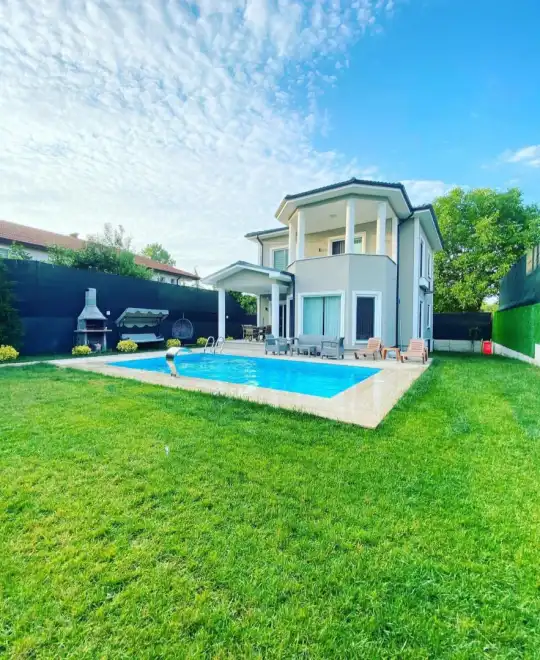 Villamızda yer alan özel yüzme havuzu ve bahçe alanı tamamen korunaklı olup, dışarıdan hiçbir şekilde görünmemektedir. Bu sayede muhafazakâr hassasiyetlere önem veren misafirlerimiz gönül rahatlığıyla havuz ve bahçe keyfini yaşayabilir. Geniş ve ferah bahçesi, doğayla iç içe bir atmosfer sunarken; sevdiklerinizle birlikte keyifli vakit geçirebileceğiniz özel bir yaşam alanı oluşturur.