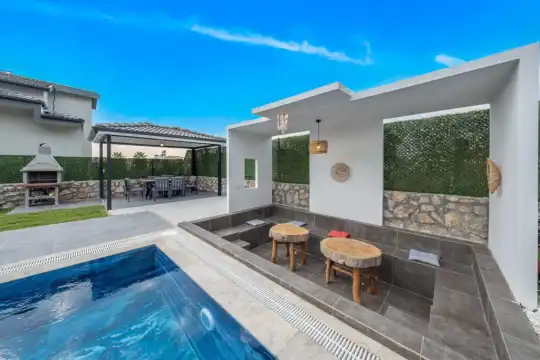 Havuz terasında bulunan şezlonglarda güneşlenebilir, bahçe masasında muhteşem yemekler yiyebilir, salıncakta sallanıp keyifli dakikalar geçirebilirsiniz.