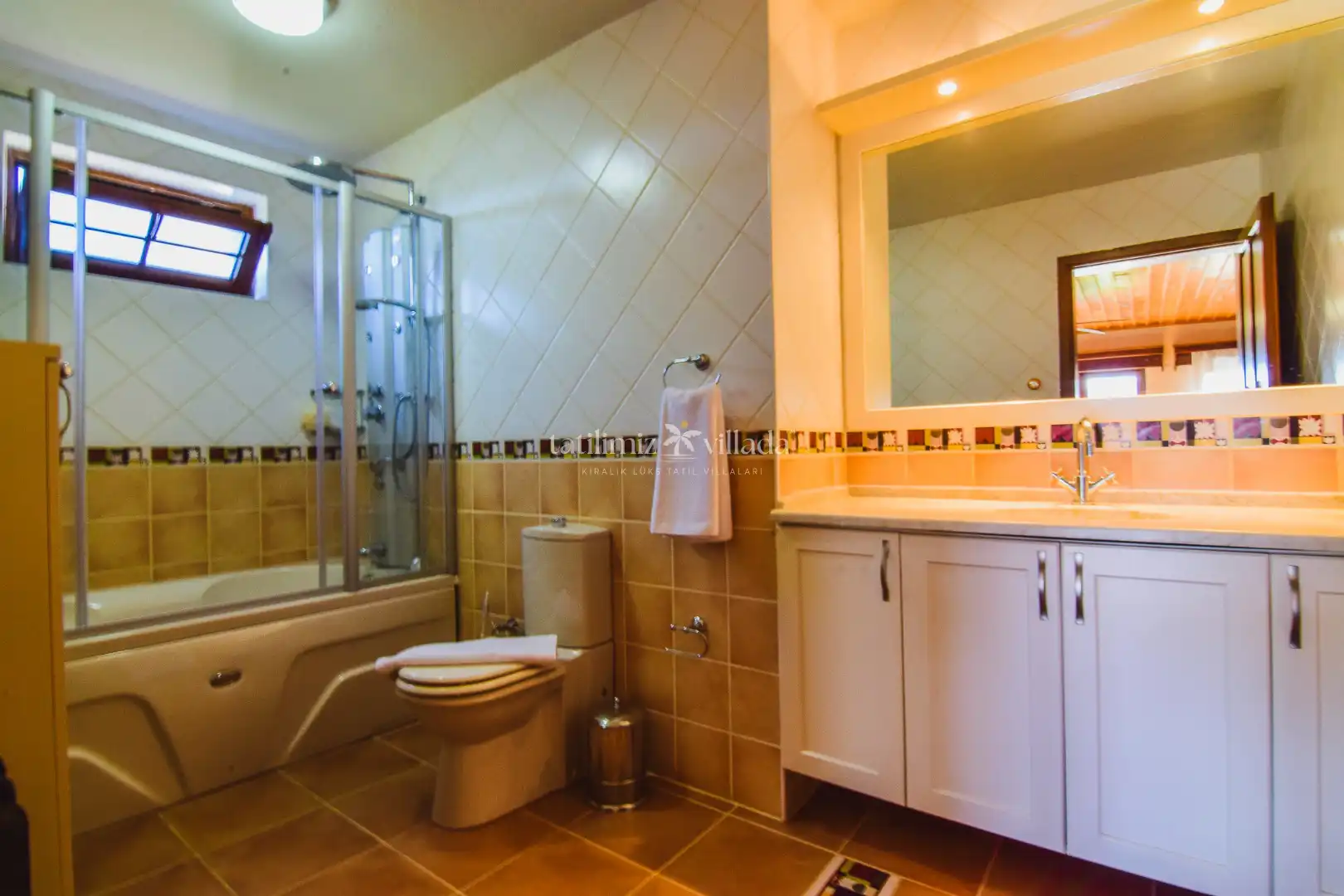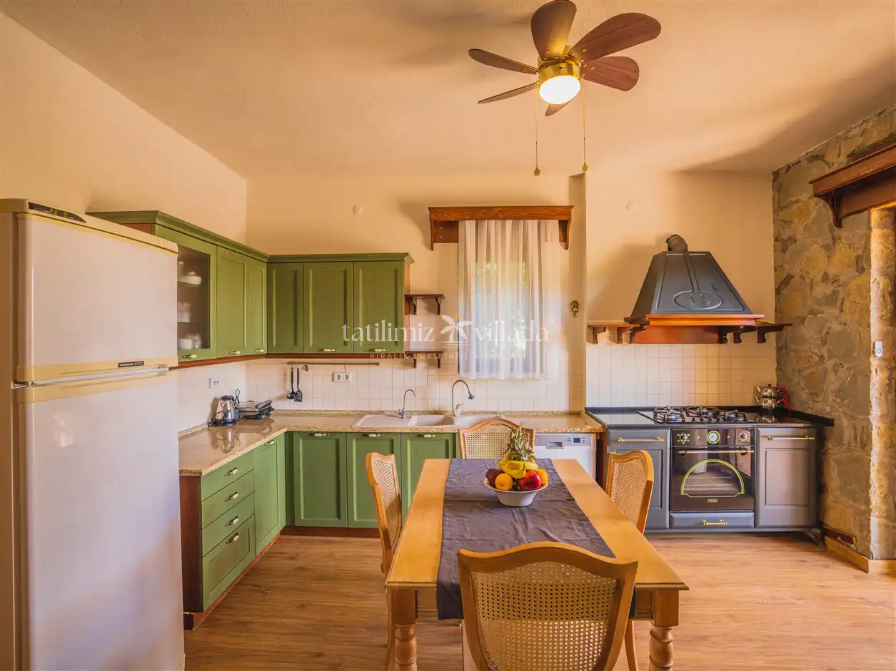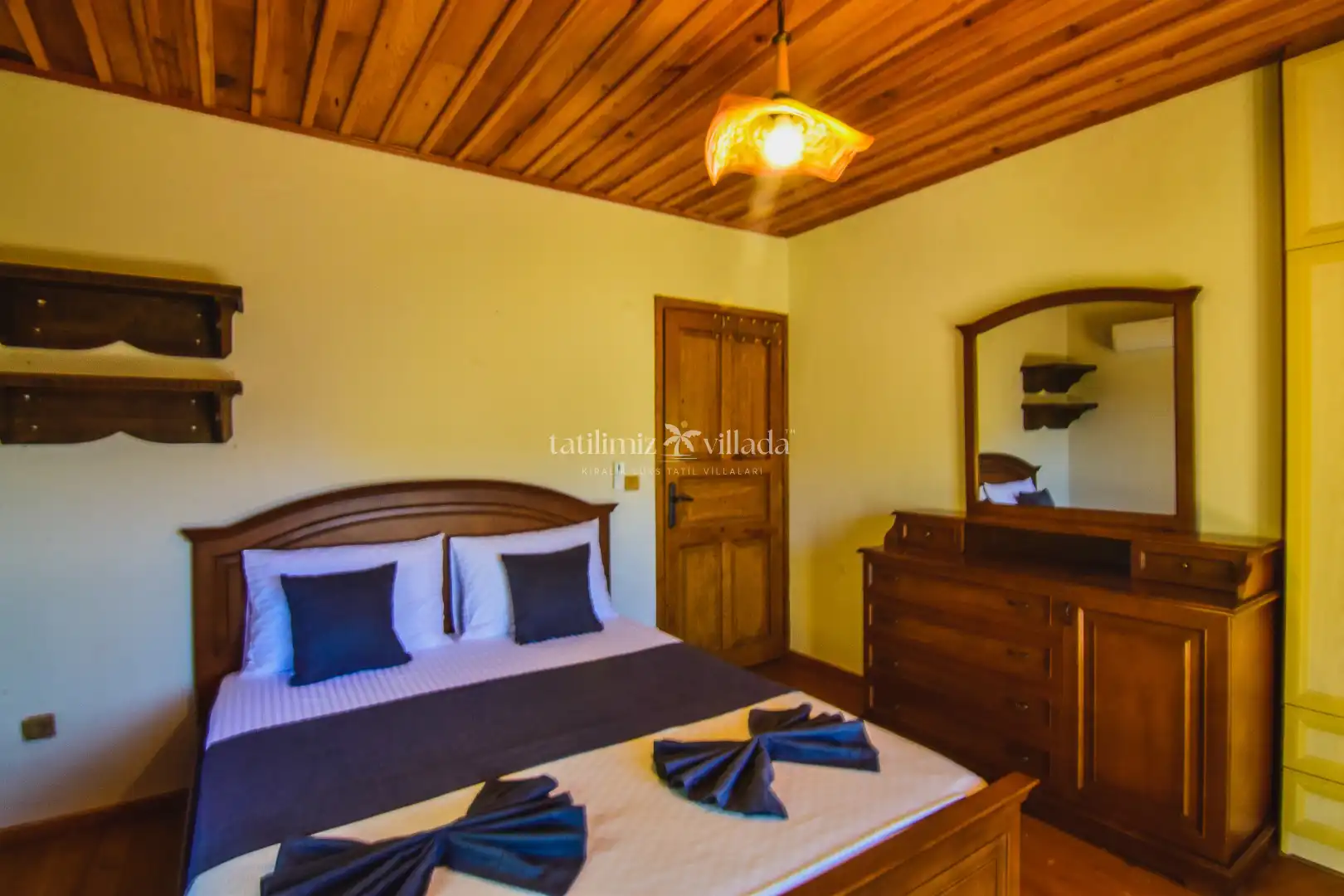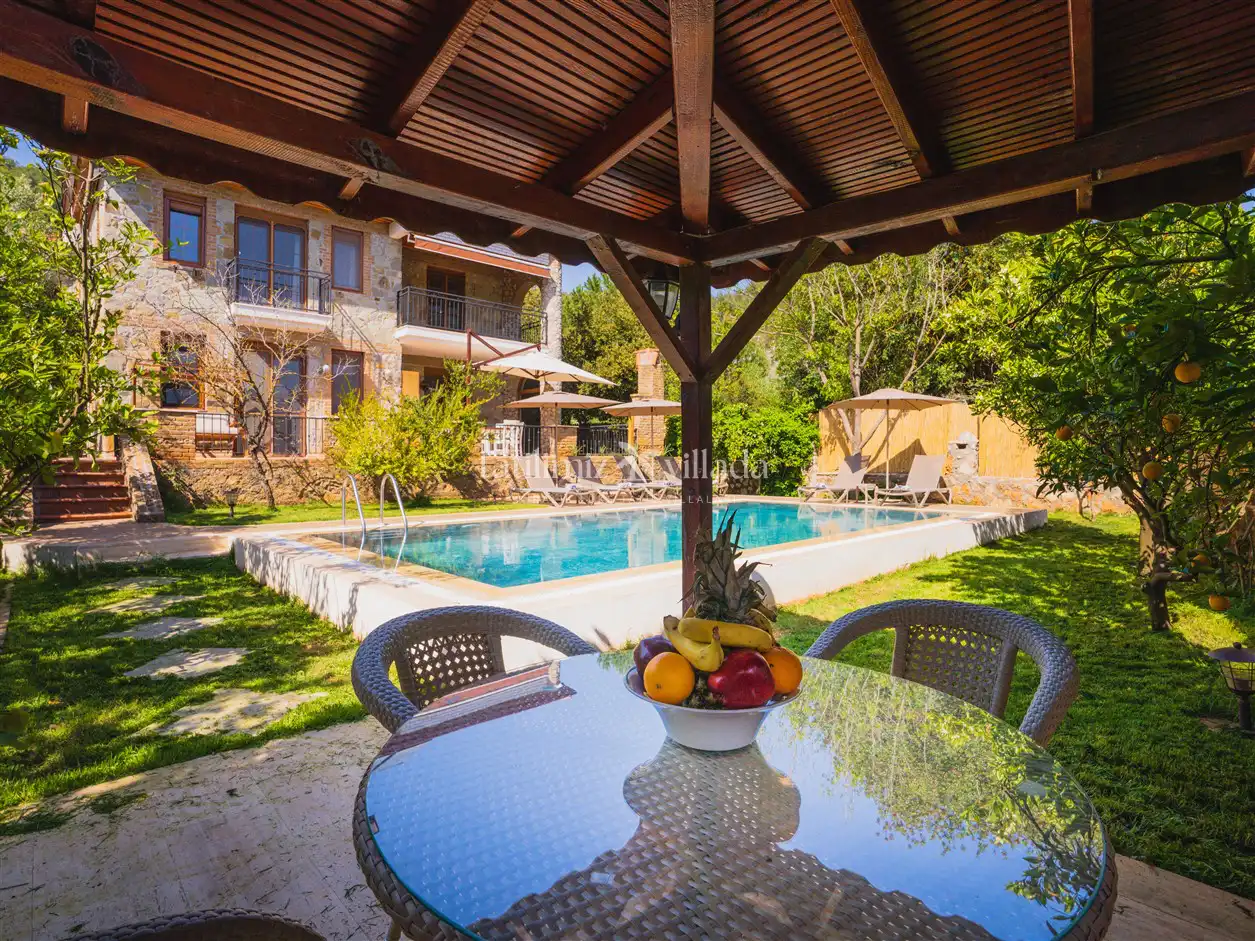 Taş ve ahşap mimarinin en güzel örneklerinden biri olan villamız, otantik dokusu ile modern konforu bir araya getirir. Özel yüzme havuzu ve havuz terası tam korunaklı olup dışarıdan görünmemektedir. Bu özelliği sayesinde özellikle fethiye muhafazakar kiralık villa arayışında olan misafirler için oldukça uygundur.
