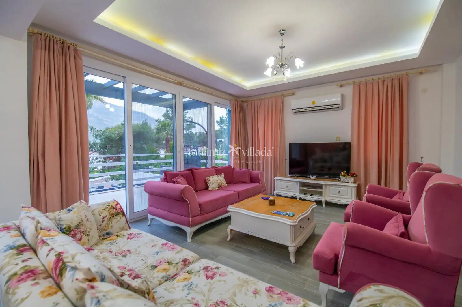 Hisarönü merkeze yalnızca 750 metre mesafede bulunan villa, çam ormanları ve dağ manzarası eşliğinde huzurlu bir tatil imkânı sunarken, Babadağ manzarasıyla da fark yaratır. Konumu sayesinde hem eğlence merkezlerine hem de Ölüdeniz plajlarına kolay ulaşım sağlar.