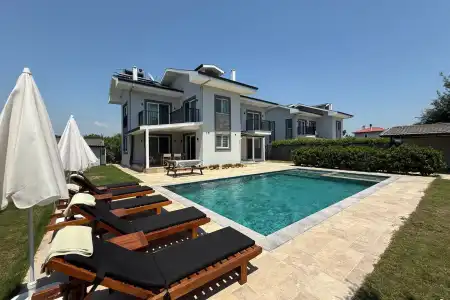 Geniş ve güneşten korunaklı verandasında keyifli yemekler yiyebileceğiniz 8 kişilik yemek masası, 50 m² büyüklüğünde özel yüzme havuzu ve hemen havuz başında bulunan barbekü alanı ile tatiliniz boyunca eğlenceli ve konforlu vakit geçirmeniz mümkündür.