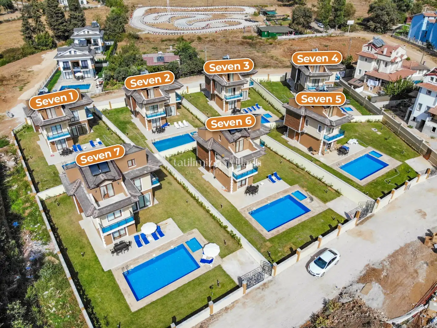 Aynı alan içerisinde yer alan toplam 7 adet villa, kalabalık aileler ve birlikte tatil yapmak isteyen arkadaş grupları için önemli bir avantaj sağlar. Hem birlikte vakit geçirebilir hem de her villanın sunduğu özel alanlarda özgürce konaklayabilirsiniz.