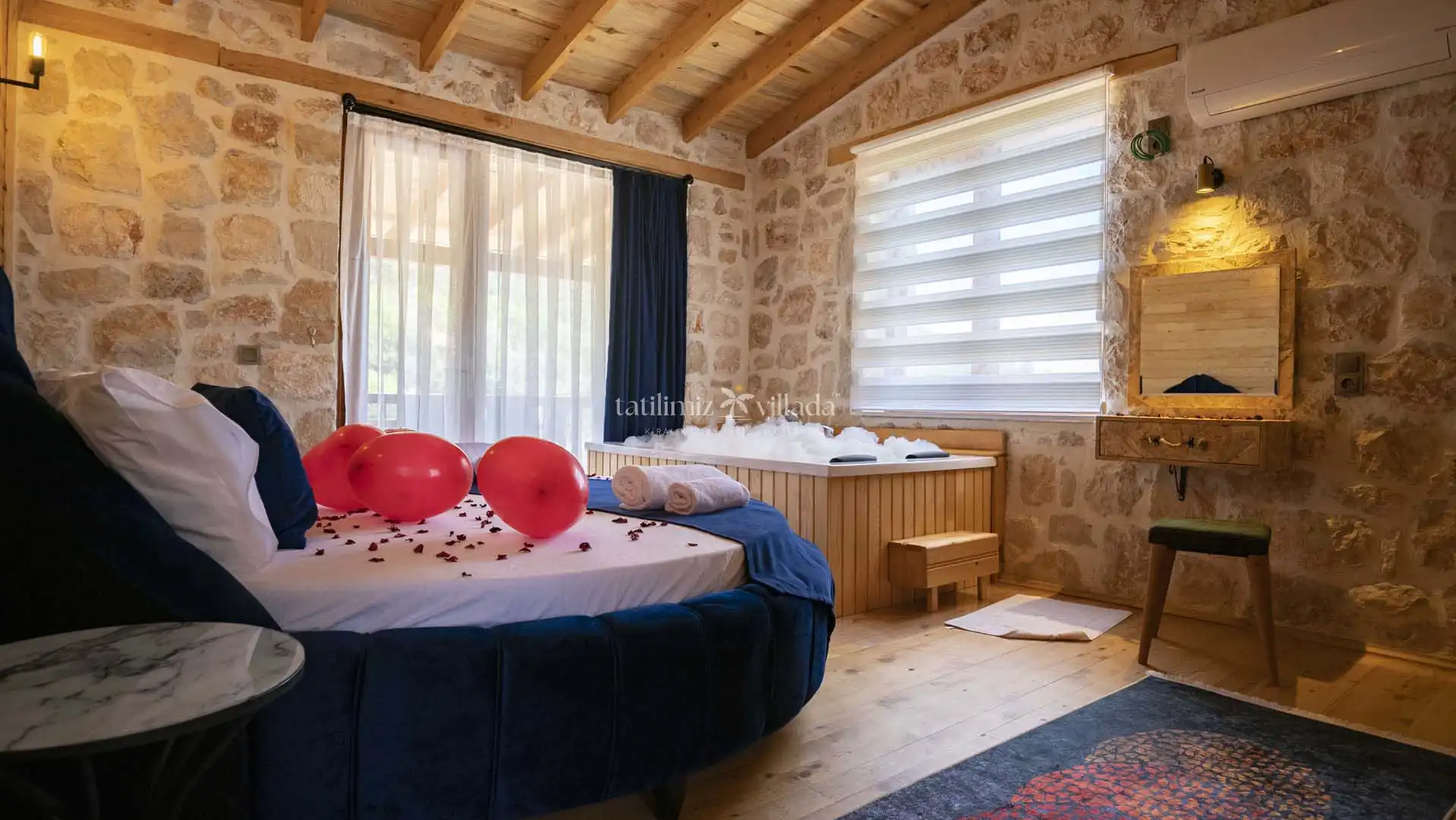 Modern ekipmanlarla donatılmış ve şık dekorasyonu ile öne çıkan villamız; 2 yatak odası ve 2 banyosu ile 4 kişiye kadar konaklama kapasitesi sunmaktadır. Tam donanımlı mutfağı, ferah oturma alanı ve jakuzisi sayesinde tatil boyunca kendinizi evinizde hissedebilirsiniz.