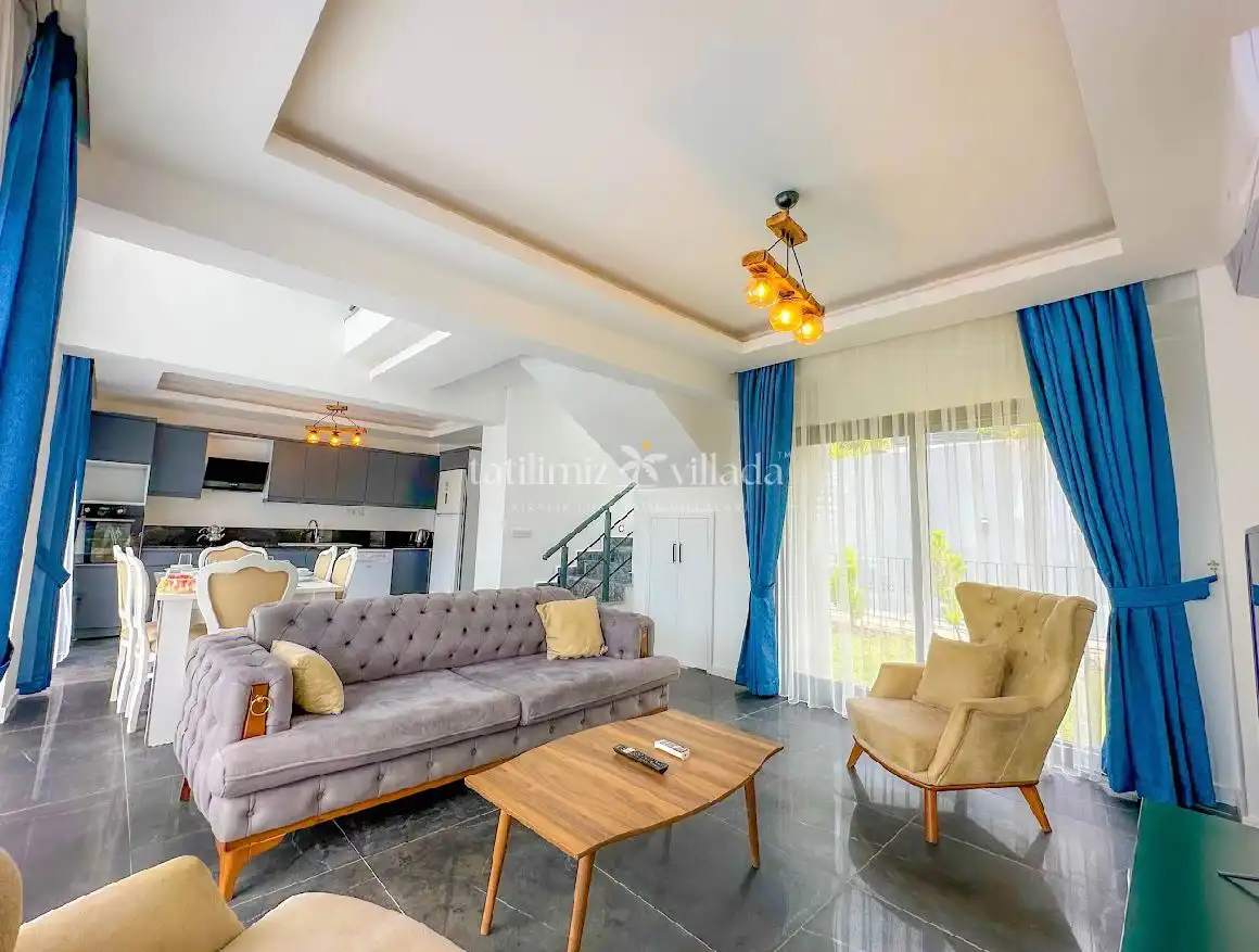 Dış alanda yer alan özel yüzme havuzu, geniş bahçe, şezlonglar, oturma grupları ve barbekü alanı sayesinde tatilinizi dolu dolu yaşayabilirsiniz. Doğa manzarası eşliğinde havuz keyfi yapabilir, gün batımında sevdiklerinizle unutulmaz anılar biriktirebilirsiniz.