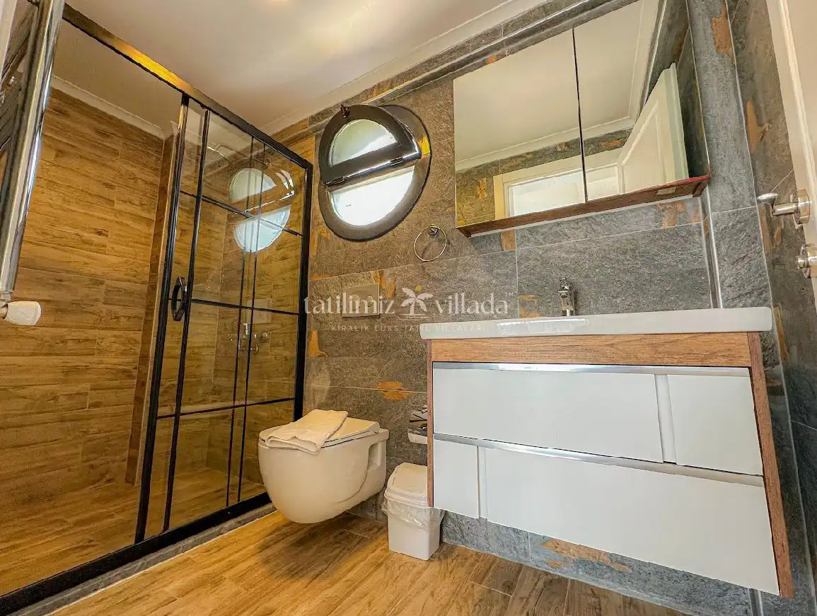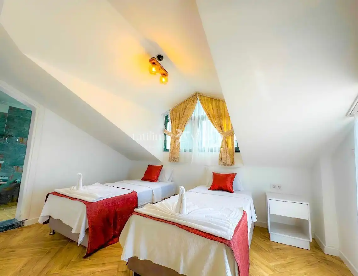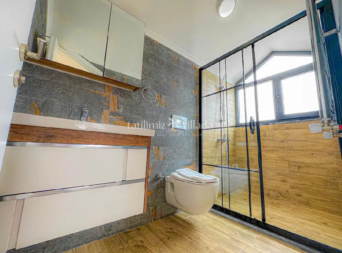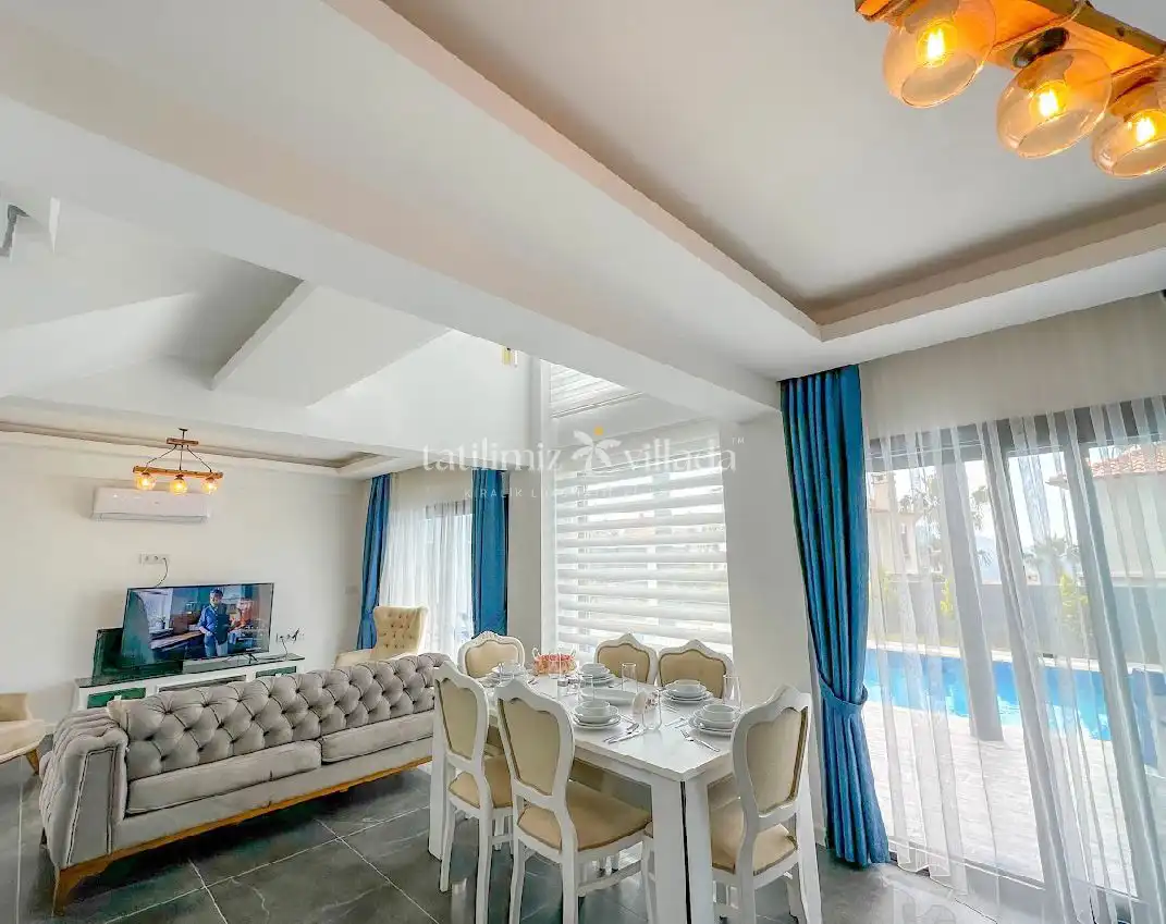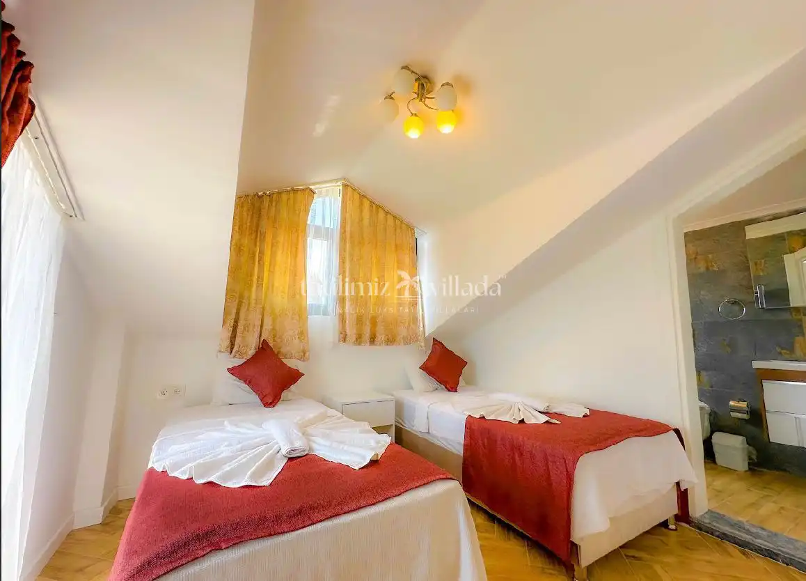 Villamız 8 kişilik konaklama kapasitesine sahip olup, 4 yatak odası, 4 ebeveyn banyosu ve 1 adet misafir lavabosu bulunmaktadır. Modern ve konforlu tasarımı sayesinde misafirlerine keyifli bir konaklama deneyimi sunmaktadır.
