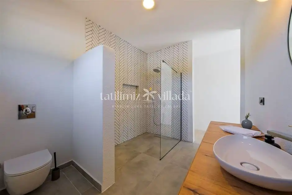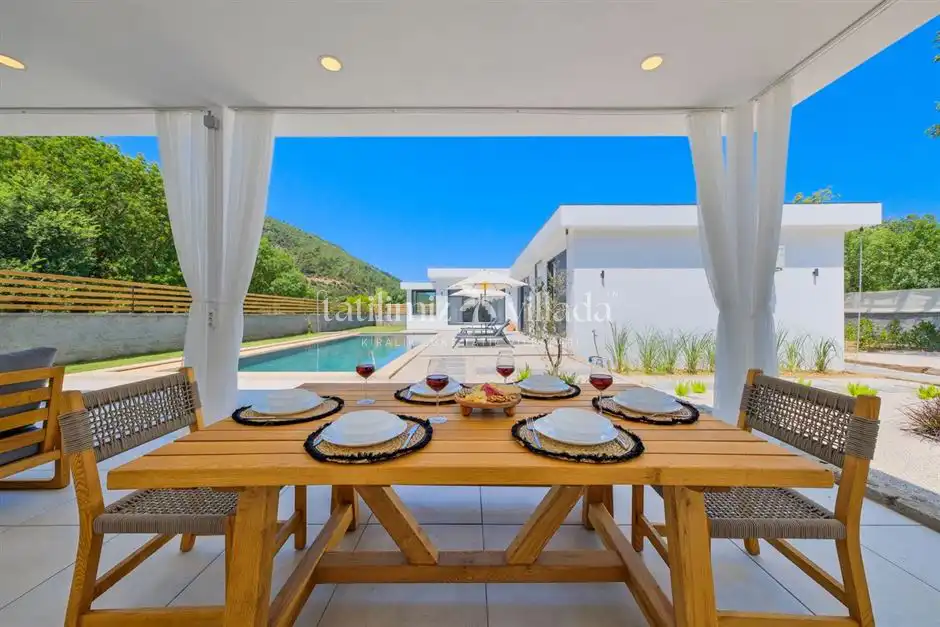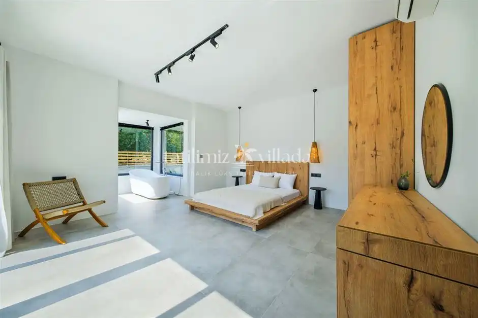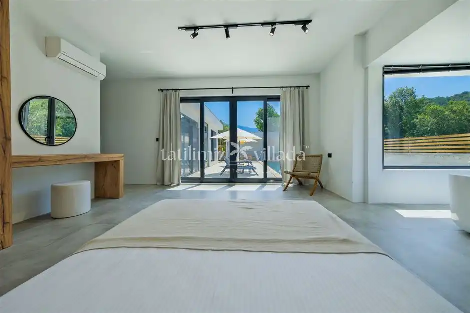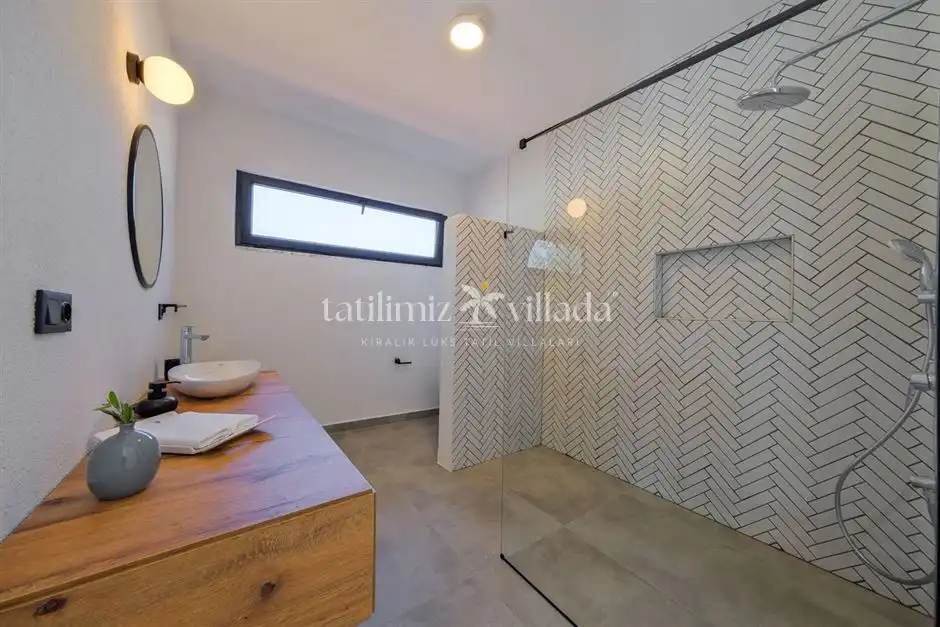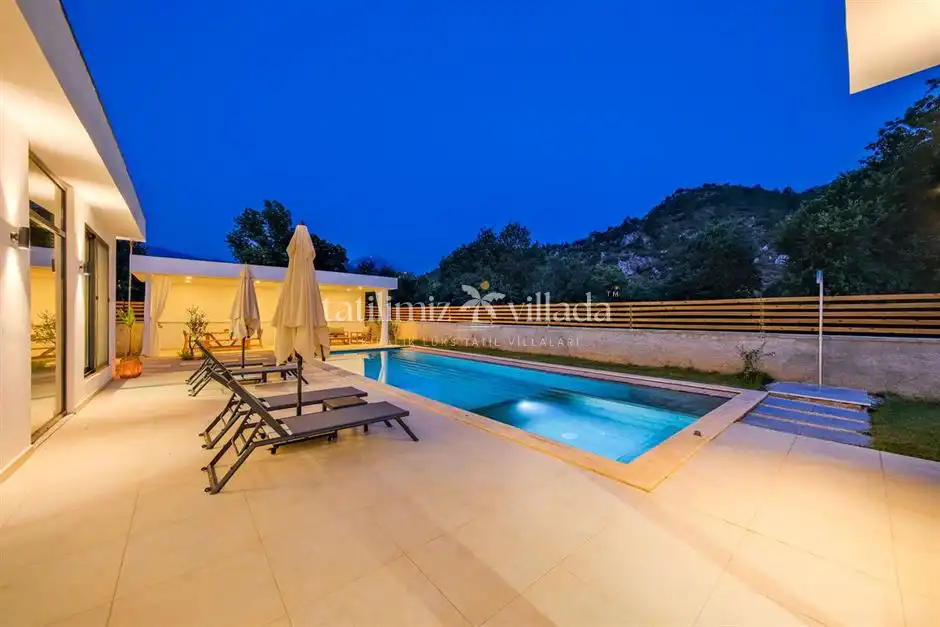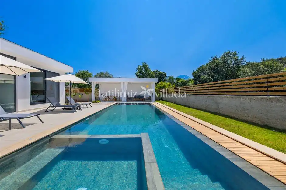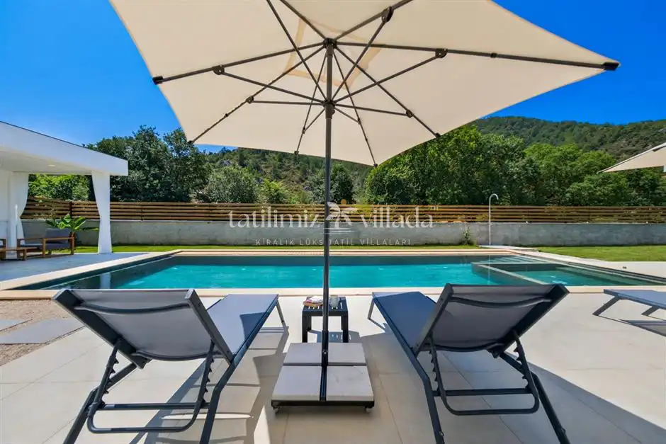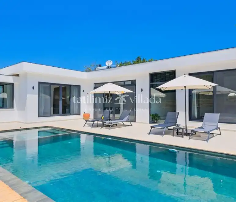3+1 mimariye sahip olan villamız, aileler ve balayı çiftleri için rahat bir konaklama imkanı sunmaktadır. Özel yüzme havuzunun içerisinde yer alan alanı sayesinde hem serinleyebilir hem de günün yorgunluğunu keyifli bir şekilde atabilirsiniz. Korunaklı havuz alanı sayesinde dışarıdan görünmeden rahat bir tatil deneyimi yaşayabilirsiniz.