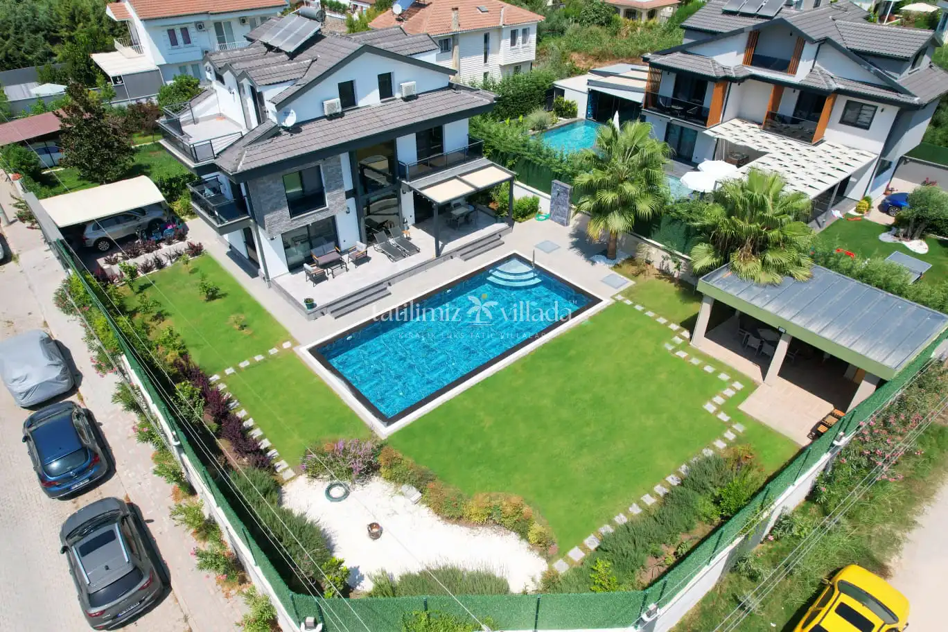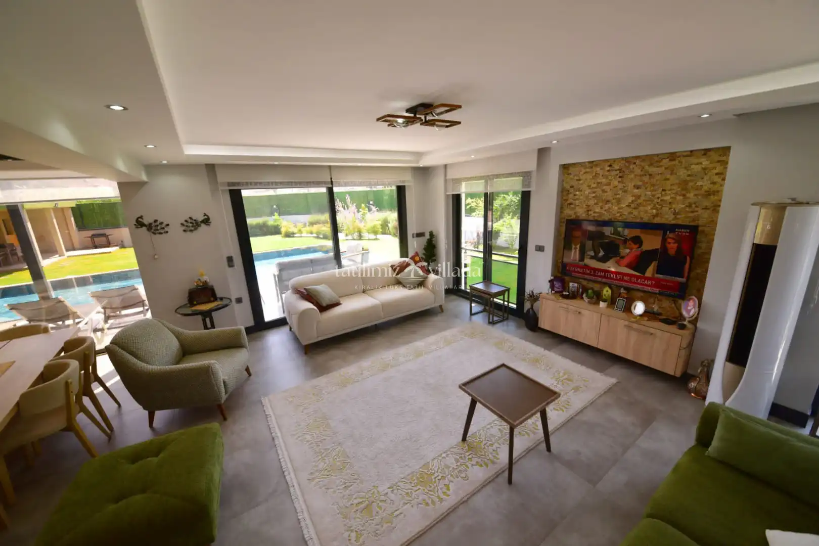 Merkezi konumlu kiralık villa seçenekleri arasında öne çıkan Villa Legends, geniş havuz terası, şezlong alanı, bahçe oturma grubu ve ferah yaşam alanları ile misafirlerine konforlu bir tatil sunmaktadır. Hem dinlenmek hem de keyifli vakit geçirmek isteyen aileler için ideal bir konaklama alternatifidir.