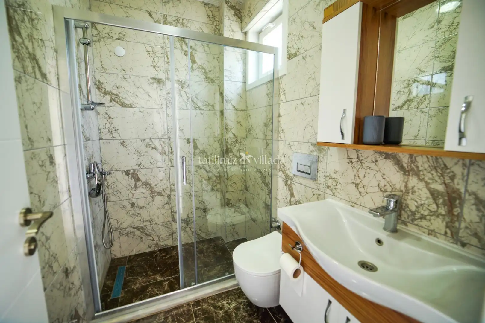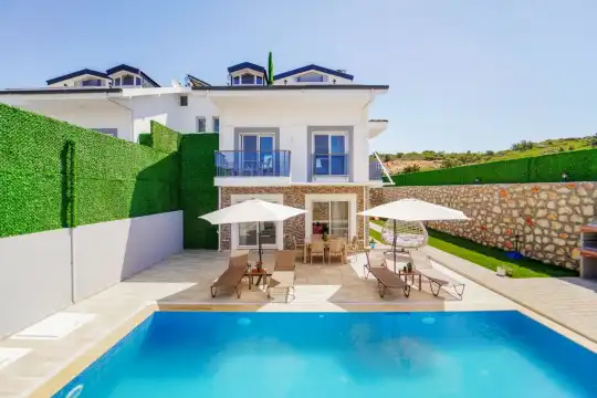 Villamızın oldukça geniş özel yüzme havuzu, gün boyu güneşin ve serinlemenin keyfini doyasıya yaşamanıza olanak tanırken; bakımlı özel bahçesi ise doğa içinde huzurlu ve sakin bir tatil atmosferi sağlar. Şehrin gürültüsünden uzak, sessiz konumu sayesinde misafirlerine tam anlamıyla dinlenme ve yenilenme fırsatı sunmaktadır.