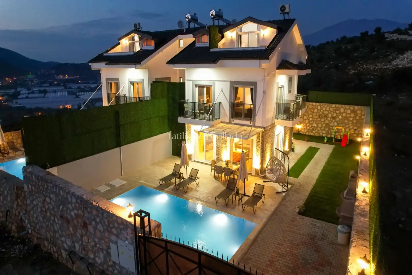 Villa Leno 1, Fethiye’nin doğasıyla öne çıkan Kumluova bölgesinde, Patara Plajı manzarasına karşı konumlanmış, 4 yatak odalı özel havuzlu lüks bir tatil villasındır. Geniş yaşam alanları ve ferah mimarisiyle kalabalık aileler ve arkadaş grupları için ideal bir konaklama imkânı sunar.