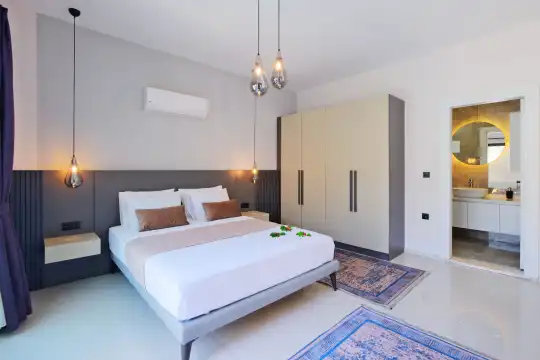 Villa, her türlü ihtiyacınızı karşılayacak modern olanaklarla donatılmıştır. Geniş ve ferah yaşam alanları, evinizdeki rahatlığı aratmazken, şık iç mekan tasarımıyla da göz doldurur. 2 geniş yatak odası, rahat yataklar ve bol ışık alacak şekilde konumlandırılmıştır, böylece misafirler konforlu bir uyku deneyimi yaşar. Ayrıca, tüm odalar ve ortak alanlar, doğal ışıkla dolu olup, iç mekanın ferah ve huzurlu bir atmosfere sahip olmasını sağlar.