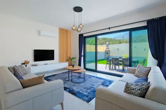 Villa, her detayında modern tasarım ve fonksiyonelliği bir arada sunmaktadır. İç mekanda geniş ve rahat odalar, ferah yaşam alanları, son teknoloji ile donatılmış mutfak ve banyo gibi olanaklar, konukların her ihtiyacını karşılayacak şekilde tasarlanmıştır. 2 yatak odası, her biri konforlu yataklarla donatılmış olup, misafirlerin kaliteli bir uyku çekebilmesi için ideal bir ortam sunar. Ayrıca geniş pencereleri sayesinde doğal ışıkla dolu bir atmosferde konaklama fırsatı sağlar.