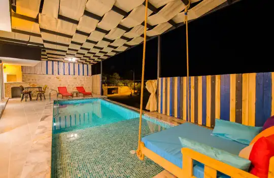 Kalkan’ın gözde bölgelerinden Kördere mevkiinde konumlanan Villa Liza, deniz manzaralı, jakuzili ve korunaklı yapısıyla balayı çiftleri için özel olarak tasarlanmış şık ve konforlu bir villadır. Sessiz, sakin ve doğayla iç içe bir ortamda unutulmaz bir tatil sunan Villa Liza, mahremiyete önem veren çiftler için ideal bir seçenektir.