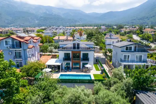 Villa Lotus, Fethiye’nin popüler Hisarönü mevkiinde konumlanmış, 4+1 odalı ve 8 kişilik konaklama kapasitesine sahip modern bir tatil villasıdır. Villada özel kapalı havuz ve jakuzi bulunmaktadır, böylece misafirler yılın her dönemi konforlu ve keyifli bir şekilde yüzme ve dinlenme imkânına sahip olur. Geniş ve ferah yaşam alanları, modern dekorasyonu ve tam donanımlı mutfağı ile aileler veya arkadaş grupları için ideal bir konaklama seçeneği sunmaktadır. Villa Lotus’un konumu sayesinde çevredeki plajlara, restoranlara ve alışveriş noktalarına kolayca ulaşabilir, Fethiye’nin doğal güzelliklerini keşfetme şansı bulabilirsiniz. Hem dinlenmek hem de eğlenmek isteyenler için tasarlanmış bu villa, özel havuz ve jakuzi ayrıcalığıyla tatilinizi unutulmaz kılacaktır.