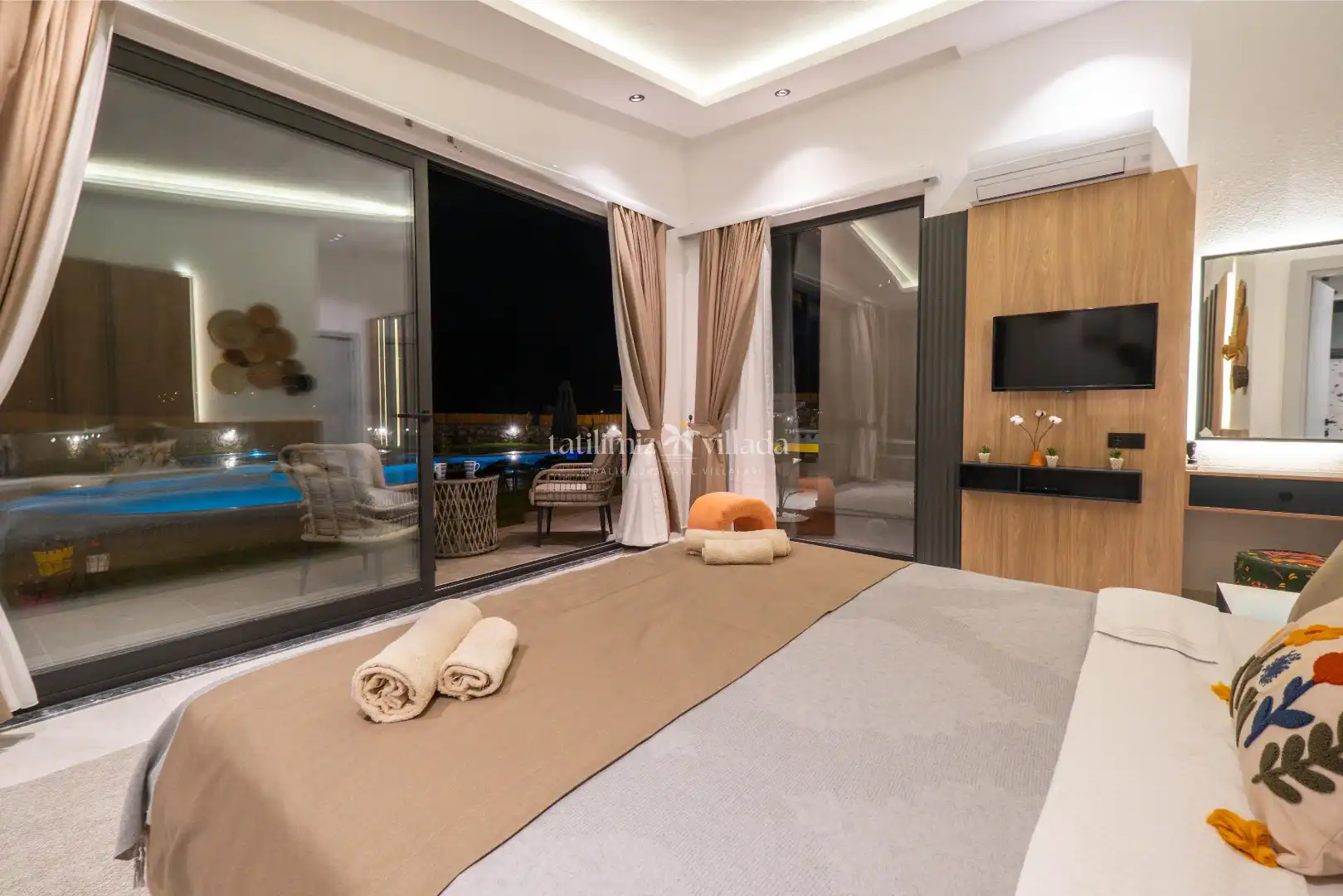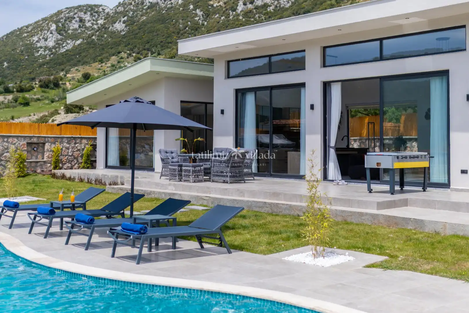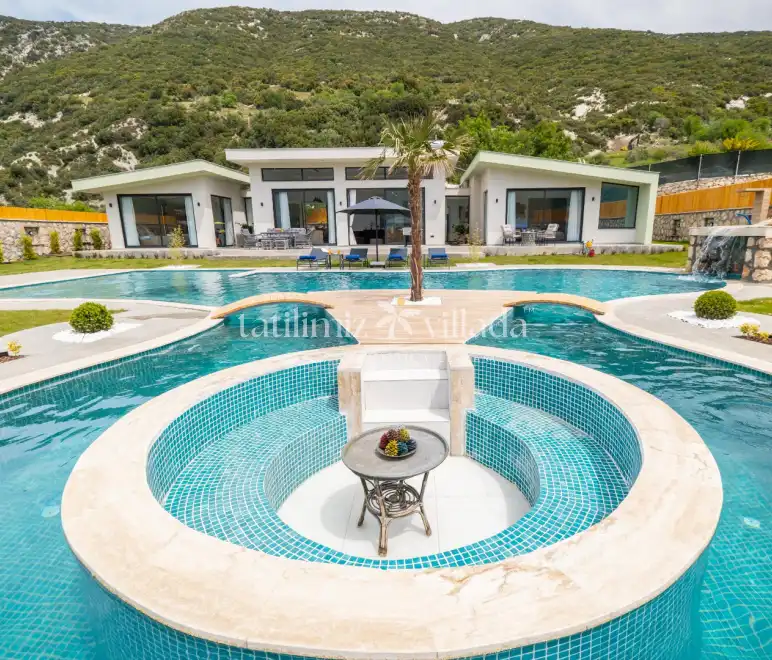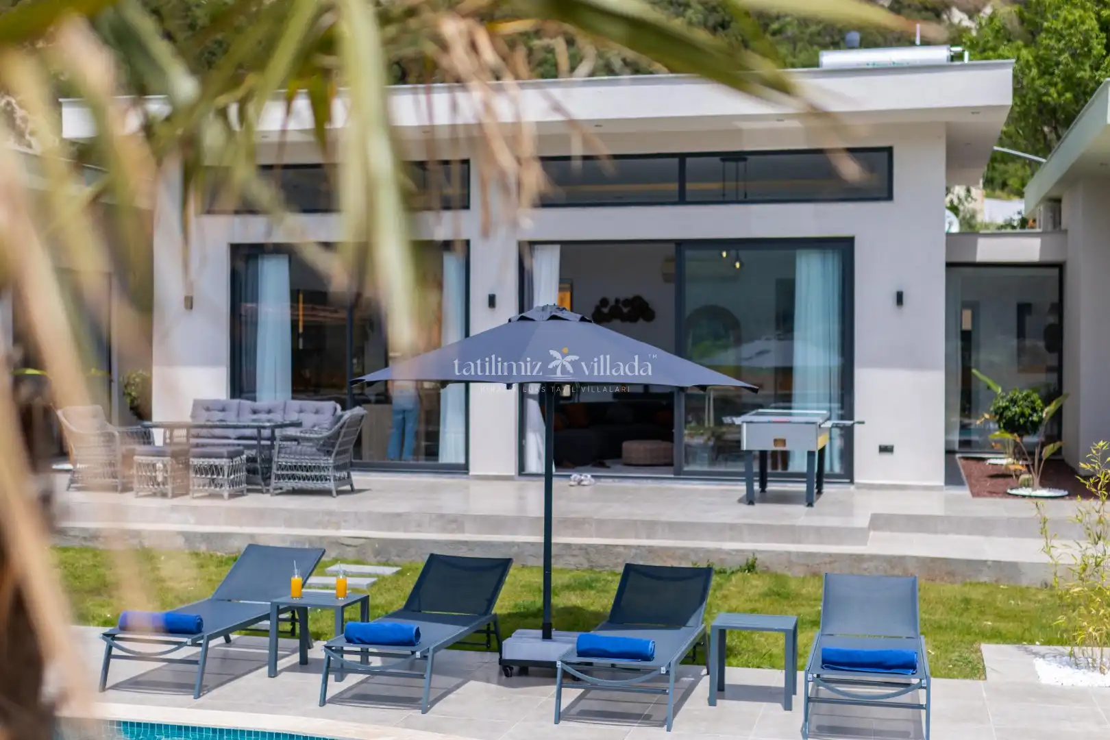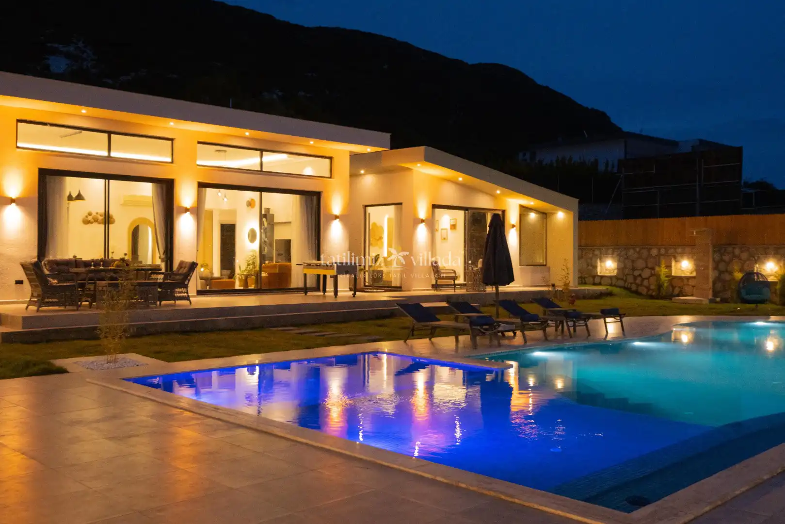 Villamızın tamamen korunaklı havuzu, dış gözlerden uzak bir tatil imkanı sunarken, muhteşem doğa manzarası eşliğinde dinlenme fırsatı sağlar. Lüks ve modern şekilde dizayn edilen villamızda konforunuz için tüm detaylar düşünülmüştür. Tatilinizi daha eğlenceli hale getirmek için langırt, masa tenisi, çocuk oyun alanı ve sauna gibi birçok aktivite ve donanım da mevcuttur.