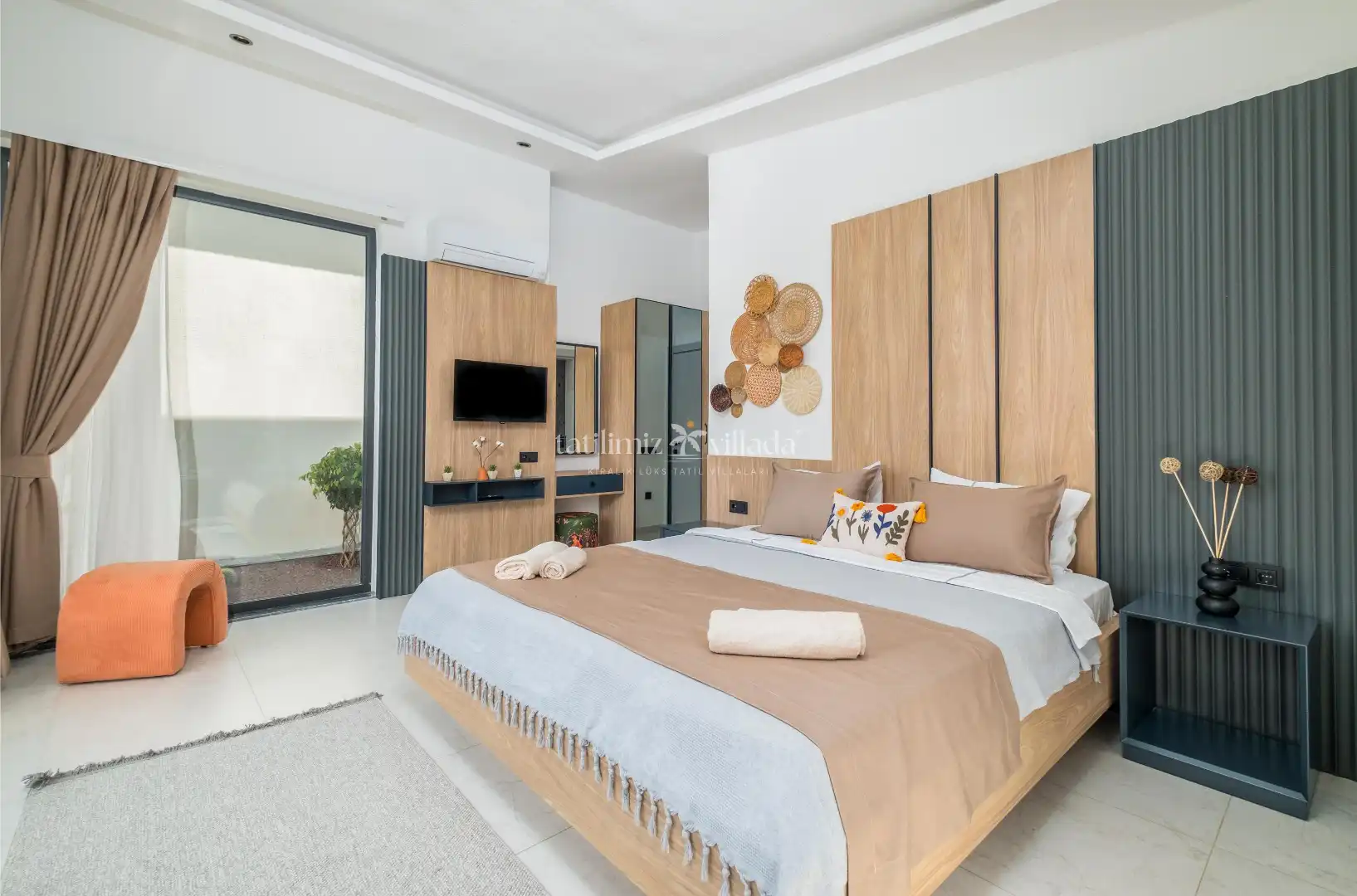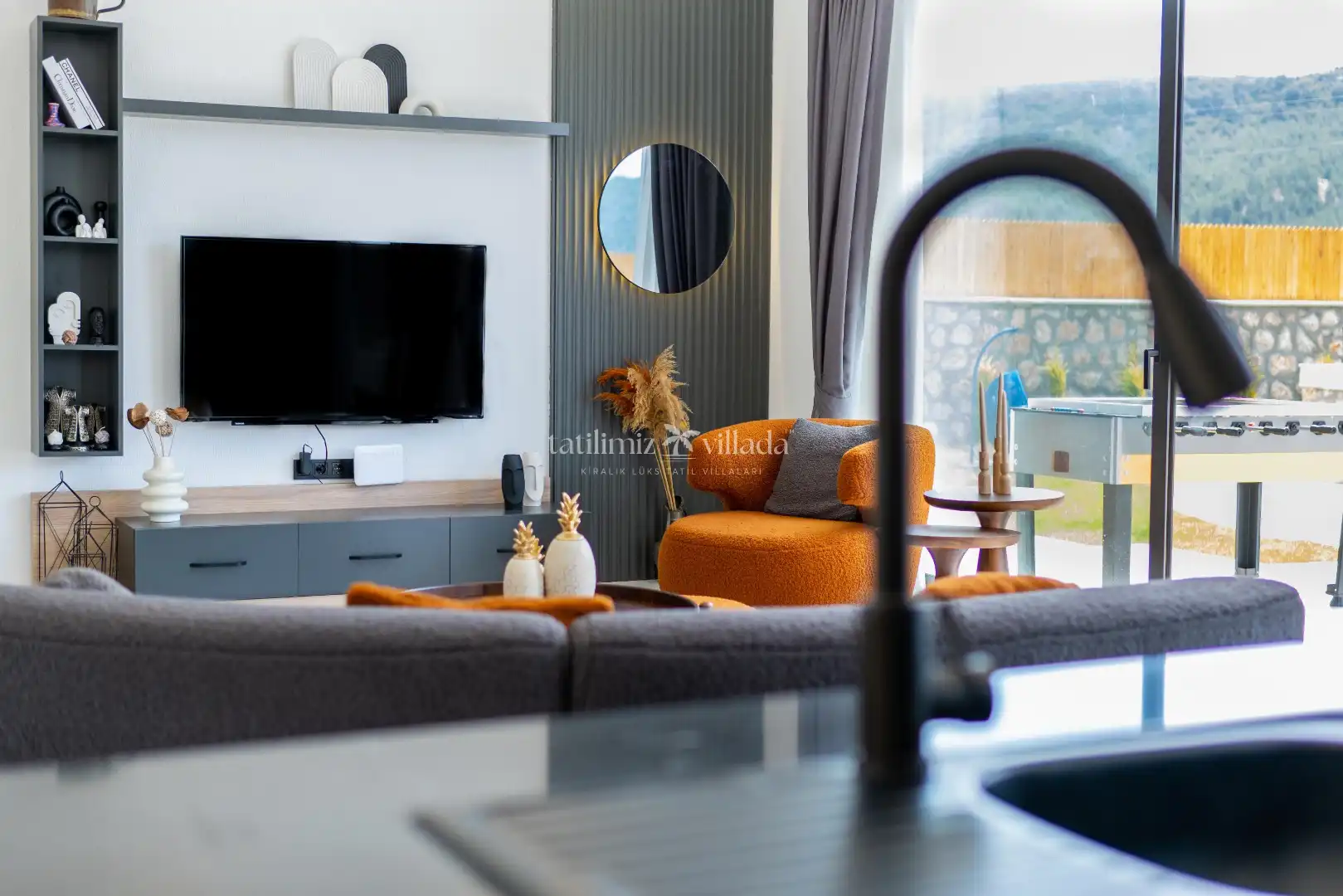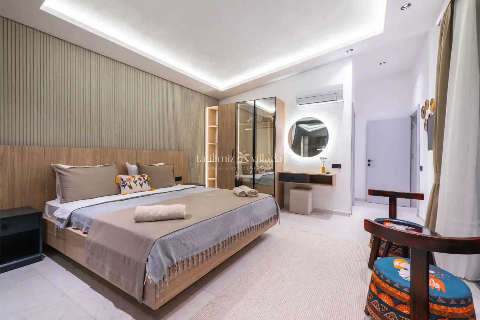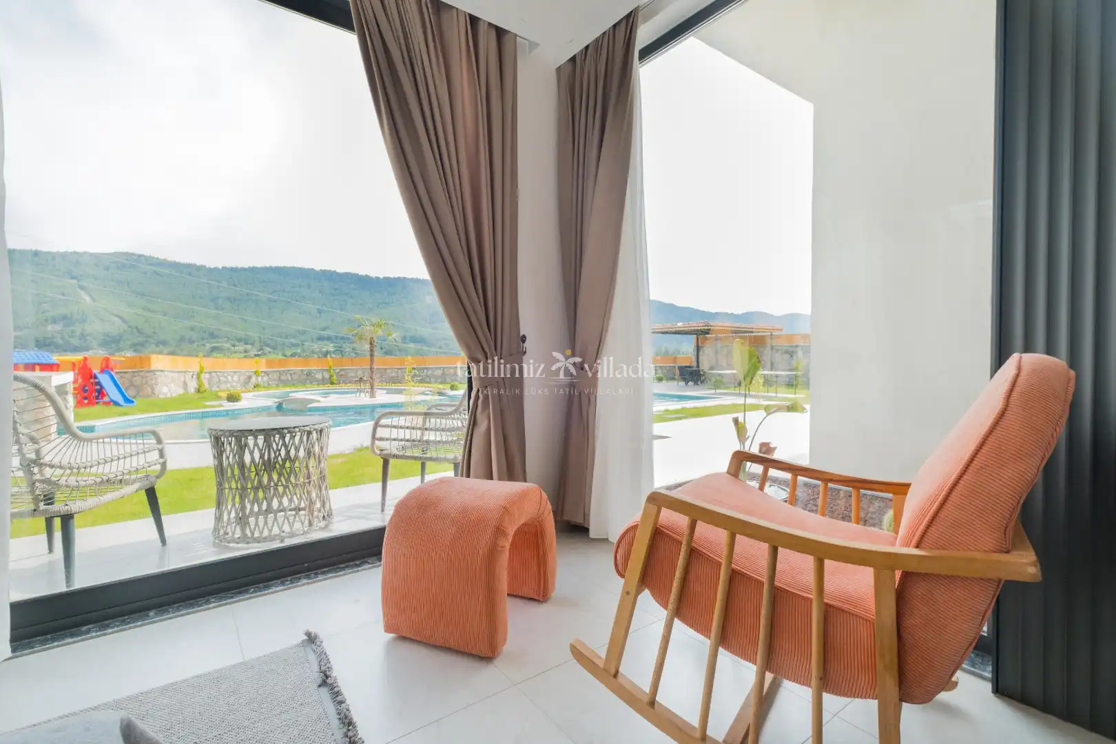 Villamızın tamamen korunaklı havuzu, dış gözlerden uzak bir tatil imkanı sunarken, muhteşem doğa manzarası eşliğinde dinlenme fırsatı sağlar. Lüks ve modern şekilde dizayn edilen villamızda konforunuz için tüm detaylar düşünülmüştür. Tatilinizi daha eğlenceli hale getirmek için langırt, masa tenisi, çocuk oyun alanı ve sauna gibi birçok aktivite ve donanım da mevcuttur.