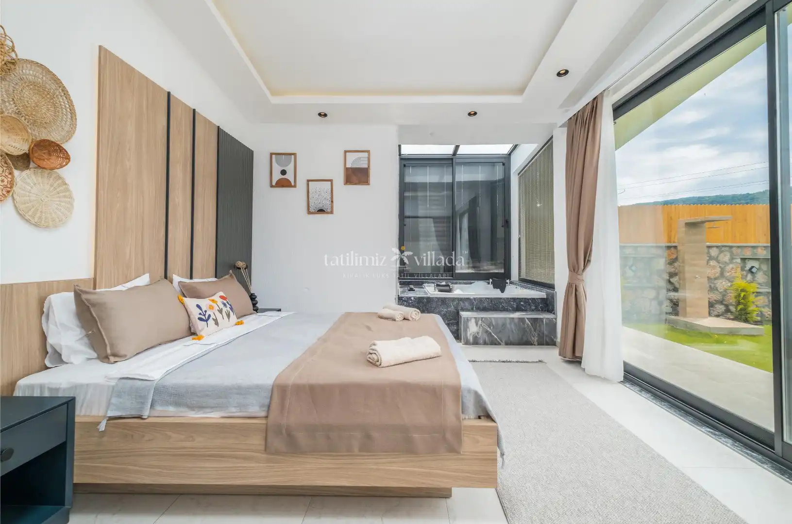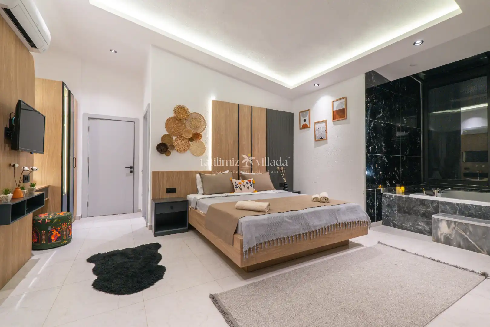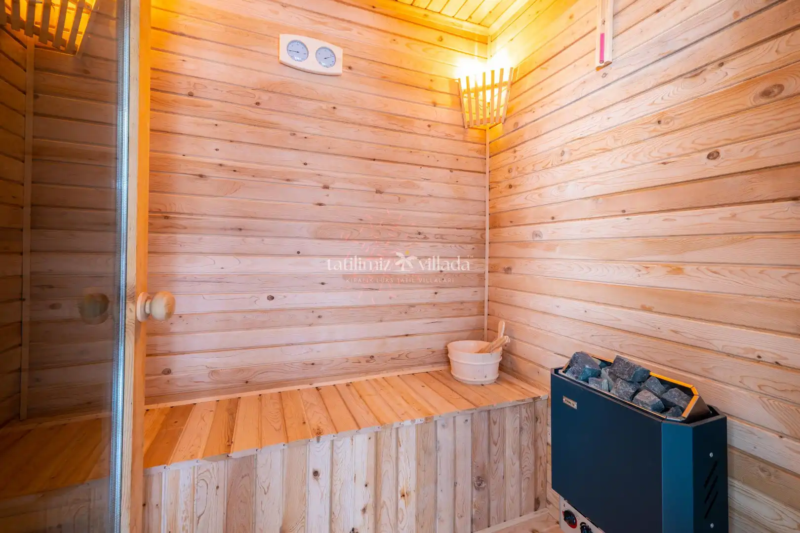 Özellik açısından zengin olan bu kiralık villa, jakuzili, saunalı ve korunaklı havuzlu yapısıyla öne çıkan kiralık villa seçenekleri arasında yer almaktadır ve konforlu bir tatil arayan misafirler için ideal bir alternatiftir.