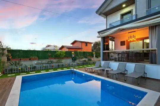 Modern tasarıma sahip villamız, aileler ve arkadaş grupları için uygun bir konaklama imkânı sunmaktadır. Villanın ferah salonu, kullanışlı mutfağı ve özenle düzenlenmiş odaları misafirlere rahat bir yaşam alanı sağlar. Ayrıca merkezi konumu sayesinde çevredeki doğal güzelliklere ve turistik noktalara kısa sürede ulaşma avantajına sahipsiniz.