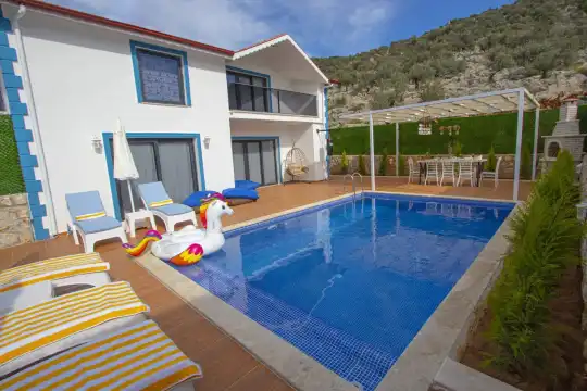 Villa Marine, Antalya’nın gözde tatil beldelerinden biri olan Kaş Kalkan merkezde konumlanmış, 4+1 oda yapısına sahip, korunaklı ve jakuzili özel bir tatil villasıdır. Geniş ve konforlu iç mekânı, modern mimarisi ve lüks detaylarıyla kalabalık aileler ya da arkadaş grupları için ideal bir konaklama seçeneği sunmaktadır. Villamızda dört adet yatak odası ve geniş bir salon bulunmakta olup toplamda 8 kişiye kadar konaklama imkânı sağlamaktadır.
