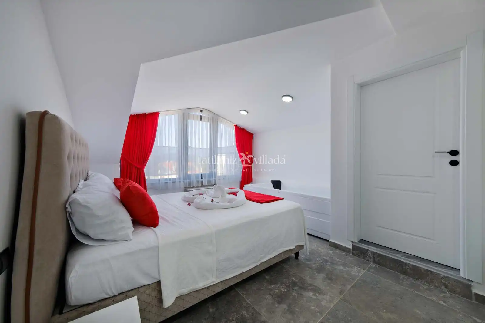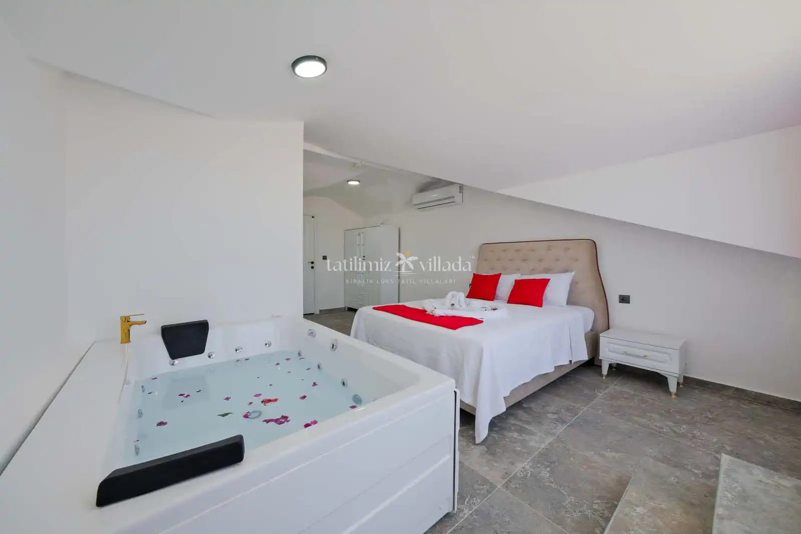 Villa Maya Life 1, özellikle jakuzili kiralık villa tercih eden misafirlerimiz için ayrıcalıklı bir tatil deneyimi sunmaktadır. Ebeveyn yatak odasında bulunan jakuzi sayesinde günün yorgunluğunu keyifli bir şekilde atabilir, tatilinizi daha konforlu ve özel hale getirebilirsiniz.