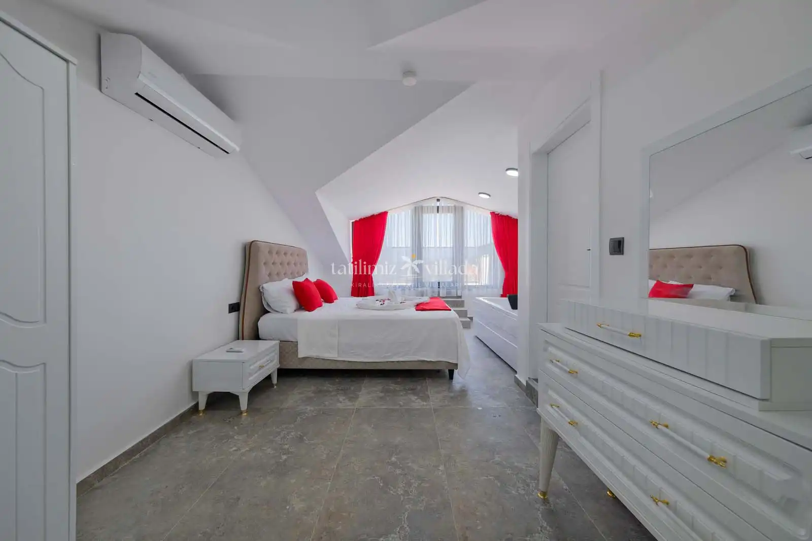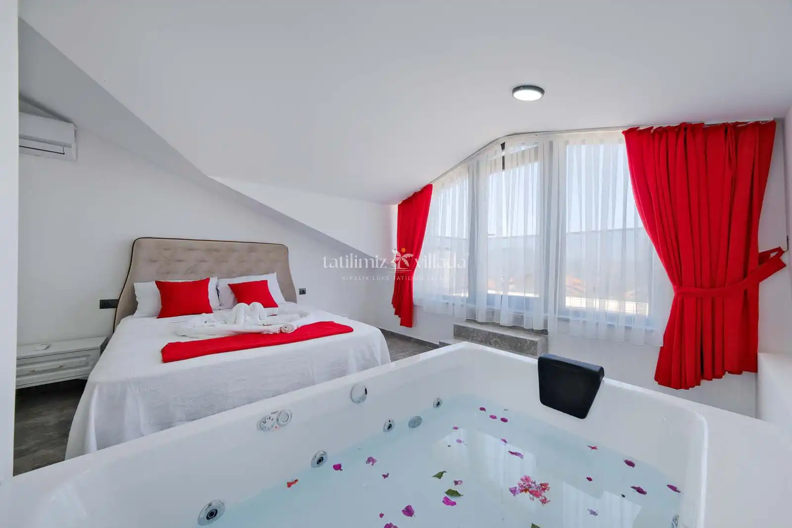 Villa Maya Life 2, özellikle jakuzili kiralık villa tercih eden misafirlerimiz için ayrıcalıklı bir tatil deneyimi sunmaktadır. Ebeveyn yatak odasında bulunan jakuzi sayesinde günün yorgunluğunu keyifli bir şekilde atabilir, tatilinizi daha konforlu ve özel hale getirebilirsiniz.
