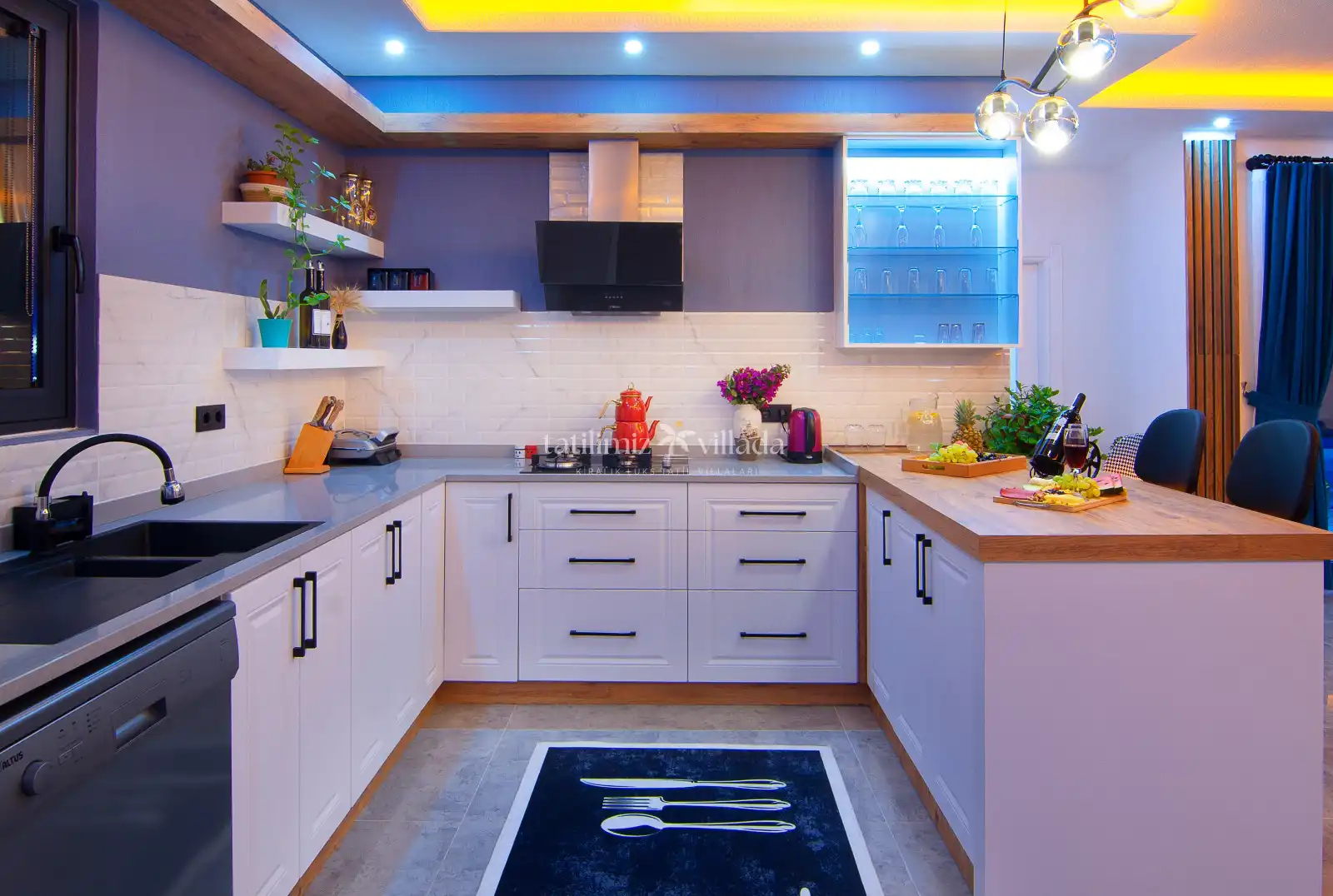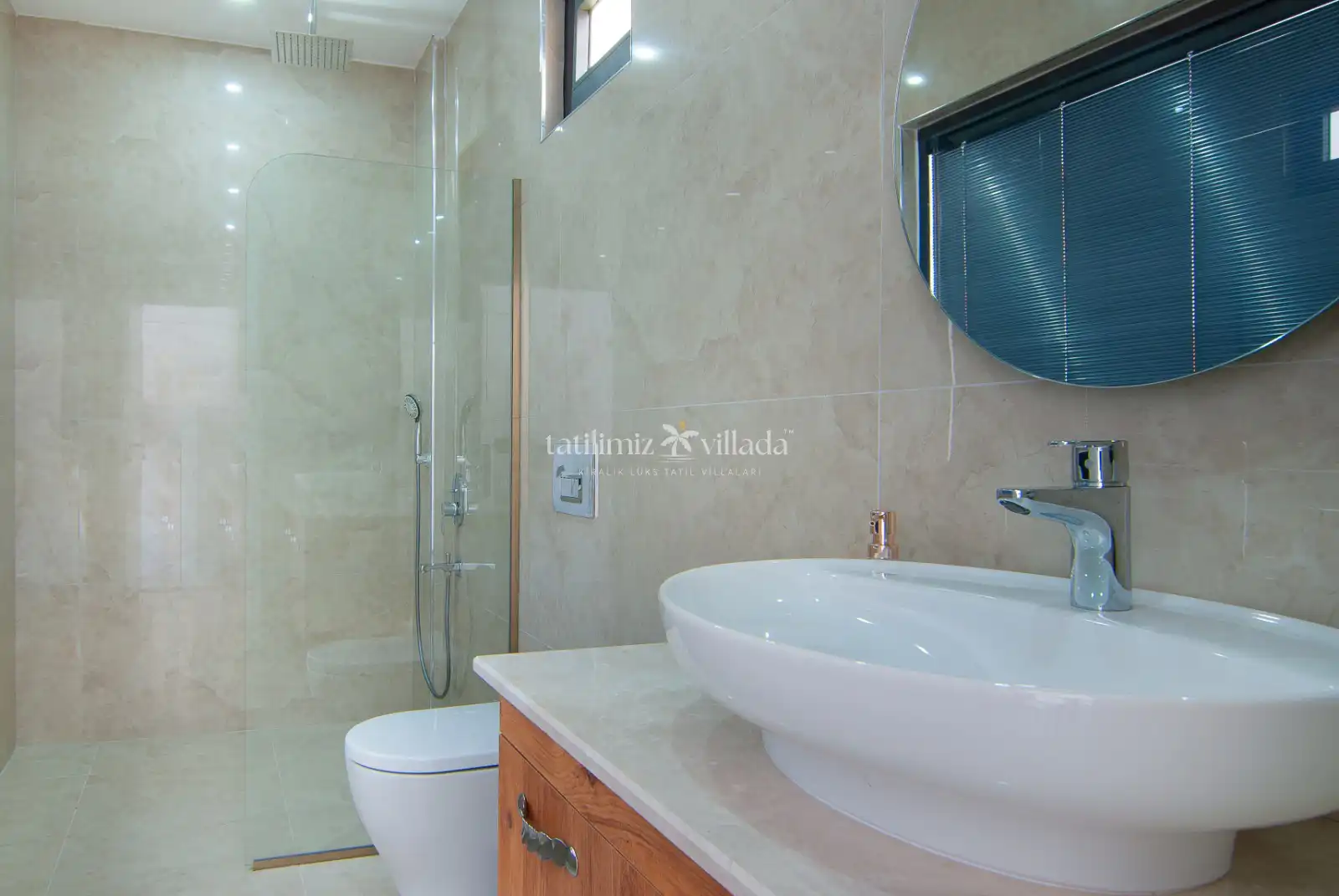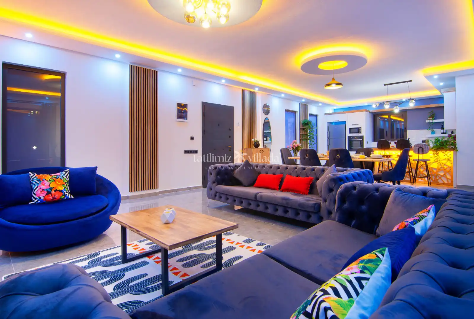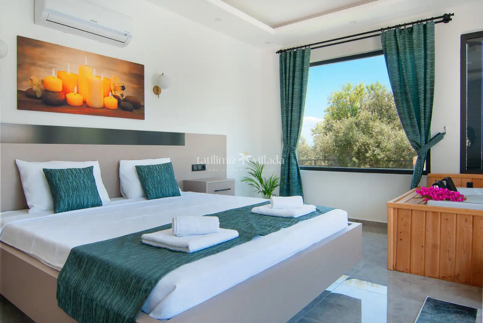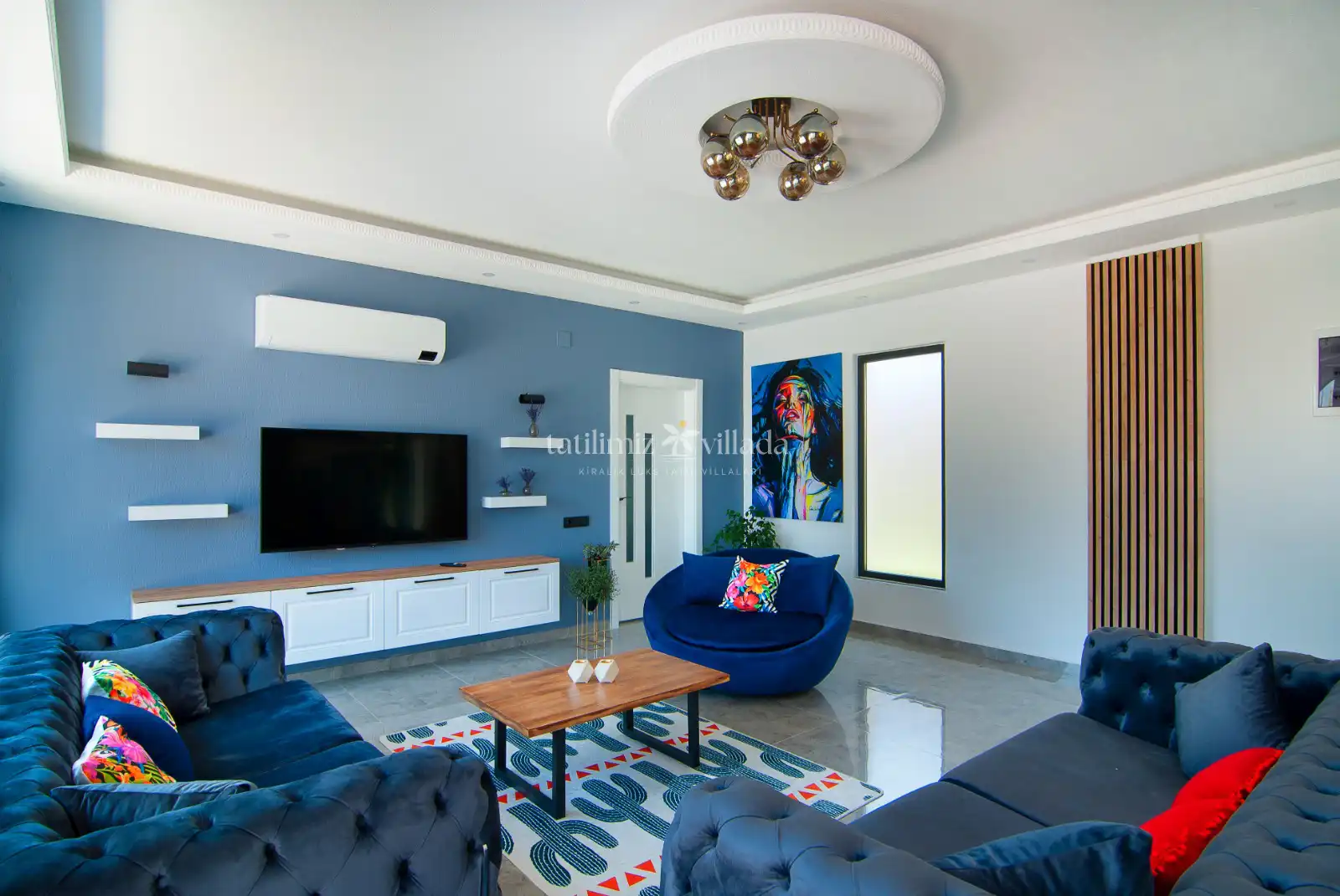 Modern ve kullanışlı şekilde tasarlanan villamızın salonunda açık mutfak, oturma grubu, klima ve TV yer almaktadır. Her iki yatak odasında da ebeveyn banyosu ve jakuzi bulunmaktadır. Size özel yüzme havuzu ile sevdiklerinizle birlikte keyifli anlar yaşayabilirsiniz.
