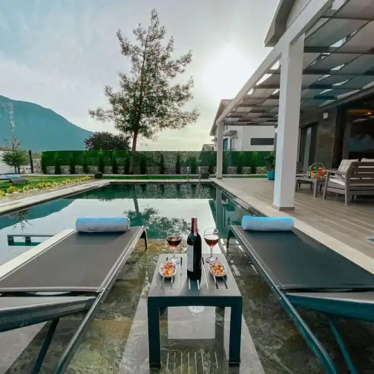 Villa Meyra, Fethiye'nin Ovacık-Hisarönü bölgesinde yer alan, özel havuzlu ve son derece modern mimariye sahip, müstakil bir tatil villasıdır. Şehir hayatının gürültüsünden uzak, doğanın içinde huzur dolu bir tatil arayanlar için mükemmel bir seçenek sunan bu villa, her detayıyla konuklarına unutulmaz bir tatil deneyimi yaşatmayı hedeflemektedir.