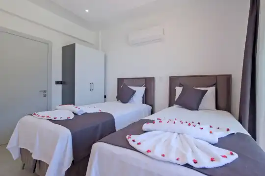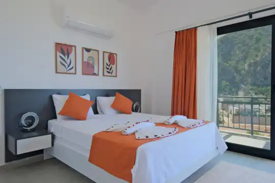 Fethiye Faralya bölgesinin muhteşem doğasında deniz manzarasına karşı aileniz ve sevdikleriniz ile unutulmaz bir tatil vadeden villa, şehrin kargaşasından uzak, lüks ve konforu bir arada deneyimleyebileceğiniz özelliklere sahiptir. Villanın havuz ve bahçe kısmında kapasiteye uygun oturma grubu, şezlong takımı, barbekü alanı; havuz terasına açılan, her ayrıntısı özenle tasarlanmış doğa manzaralı ferah bir oturma odası ve donanımlı açık mutfağı bulunmaktadır. Birinci yatak odasında çift kişilik yatak, jakuzi ve ebeveyn banyosu; ikinci yatak odasında da iki tek kişilik yatak ve banyo bulunmaktadır.