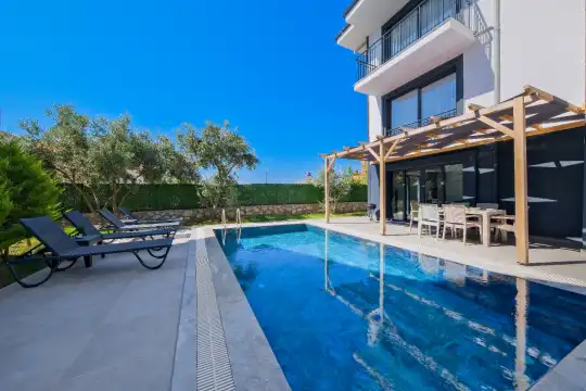 Villa, aynı zamanda yüksek güvenlik önlemleri ile de konuklarının rahatça tatil yapabilmesini sağlar. Modern güvenlik sistemleri, araç park alanı ve çevresindeki sessiz atmosfer, size tamamen rahat ve güvenli bir tatil deneyimi sunar.