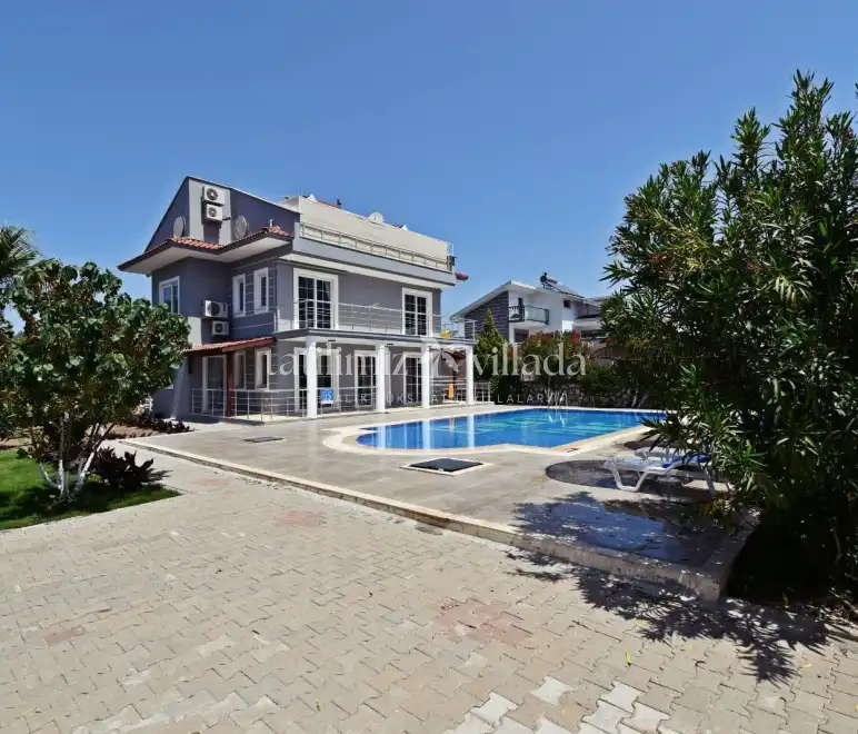 Villanın en önemli özelliklerinden biri özel ve korunaklı yüzme havuzudur. Muhafazakar konseptte tasarlanan Villa Naz, dışarıdan görünmeyecek şekilde planlanmış havuz ve yaşam alanları sayesinde gözlerden uzak, rahat ve huzurlu bir tatil imkânı sunar. Özellikle aileler için güvenli ve konforlu bir ortam oluşturur.
