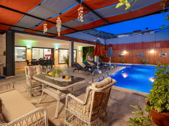 Doğayla uyumlu peyzajı ve özel yüzme havuzu ile Villa Nefes, şehir hayatının gürültüsünden uzaklaşıp sessiz ve sakin bir tatil geçirmek isteyenler için mükemmel bir ortam sunar. Geniş veranda alanı, gün boyu güneşin tadını çıkarabileceğiniz şezlonglar ve dış mekân oturma grubu ile dinlenmek için ideal alanlara sahiptir.