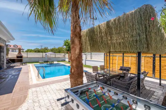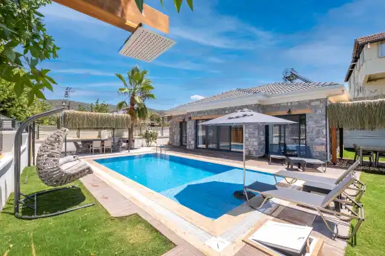 Özel havuzu, modern iç dizaynı ve geniş bahçesiyle bu villa, Fethiye’de huzurlu bir tatil yapmak isteyen misafirler için mükemmel bir tercih olacaktır. Hem doğayla iç içe olmak hem de şehre yakın bir tatil yapmak isteyenler için ideal olan bu villa, unutulmaz bir tatil geçirebilmeniz için sizi bekliyor.