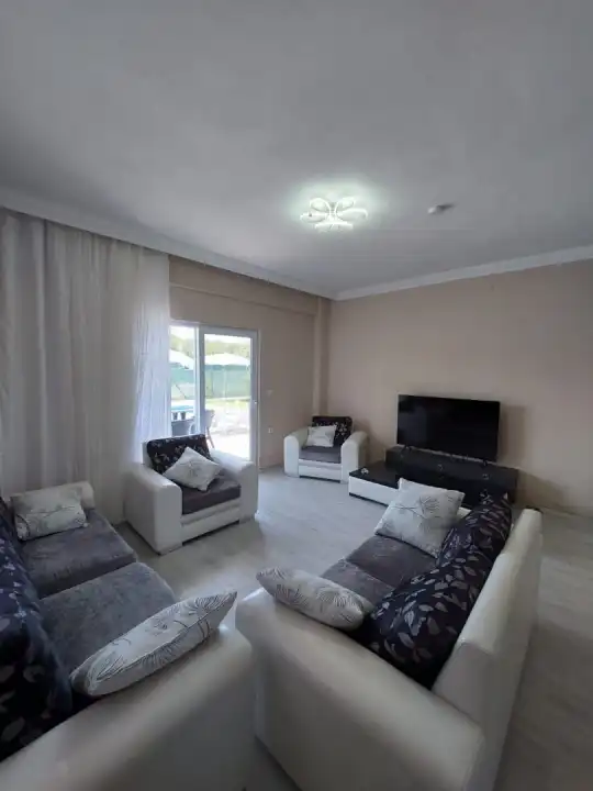 Villanın iç tasarımında modern ve konforlu detaylar öne çıkmaktadır. Yatak odaları geniş ve ferahtır. Salon kısmında oturma grubu, televizyon ve yemek masası bulunmaktadır. Mutfak, tatil süresince ihtiyaç duyulabilecek tüm temel ekipmanlarla donatılmıştır. Klima, internet bağlantısı (Wi-Fi), çamaşır makinesi ve temel mutfak gereçleri gibi olanaklar da konaklama süresince misafirlerin kullanımına sunulmaktadır.