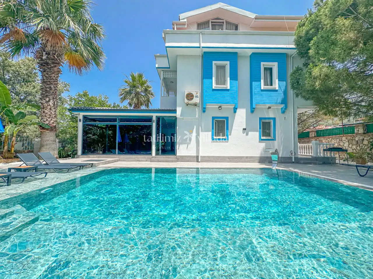 Villa Öyküm, Fethiye’nin Ölüdeniz Ovacık bölgesinde yer alan 4+1 modern ve ferah bir villadır. Isıtmalı kapalı havuz, sauna ve hamam özellikleri ile özel tasarlanmış, hem balayı çiftleri hem de aileler için ideal bir kiralık villa seçeneği sunar.