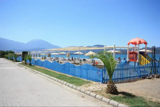 Villamız, Çalış Plajı’na sadece birkaç dakikalık yürüme mesafesindedir. Gün batımı manzaralarıyla ünlü Çalış sahilinde yürüyüş yapabilir, denize girebilir ya da sahil boyunca yer alan restoran ve kafelerde vakit geçirebilirsiniz. Aynı zamanda market, fırın ve diğer temel ihtiyaç noktalarına da yakın konumdadır. Fethiye merkeze ve diğer popüler noktalara ulaşım da oldukça kolaydır.