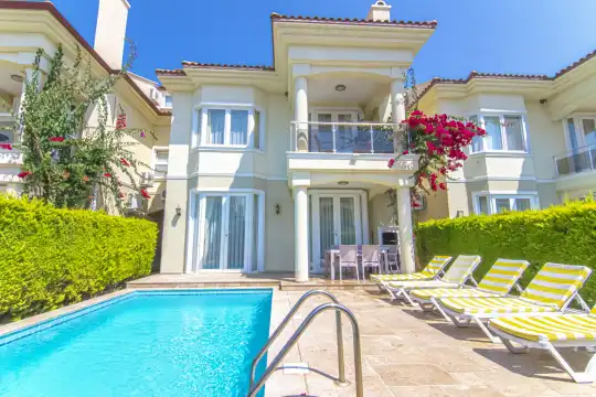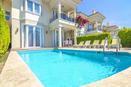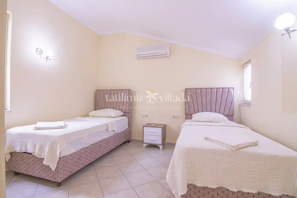 Fethiye Çalış bölgesinde, denize sıfır konumda yer alan Sunset Beach Club sitesi içerisinde bulunan Oysteria 5 villamız, müstakil havuz ve özel bahçesi ile öne çıkan şık bir tatil villasıdır. 5 yatak odasına sahip olan villamız, denize yürüme mesafesinde olup konforlu ve özenle tasarlanmış yaşam alanları sunmaktadır. Geniş aileler ve kalabalık arkadaş grupları için ideal olan bu özel villa, yenilenen eşya ve modern mobilyalarıyla keyifli bir konaklama deneyimi vadeder.