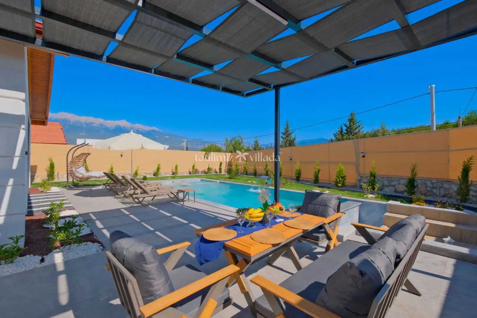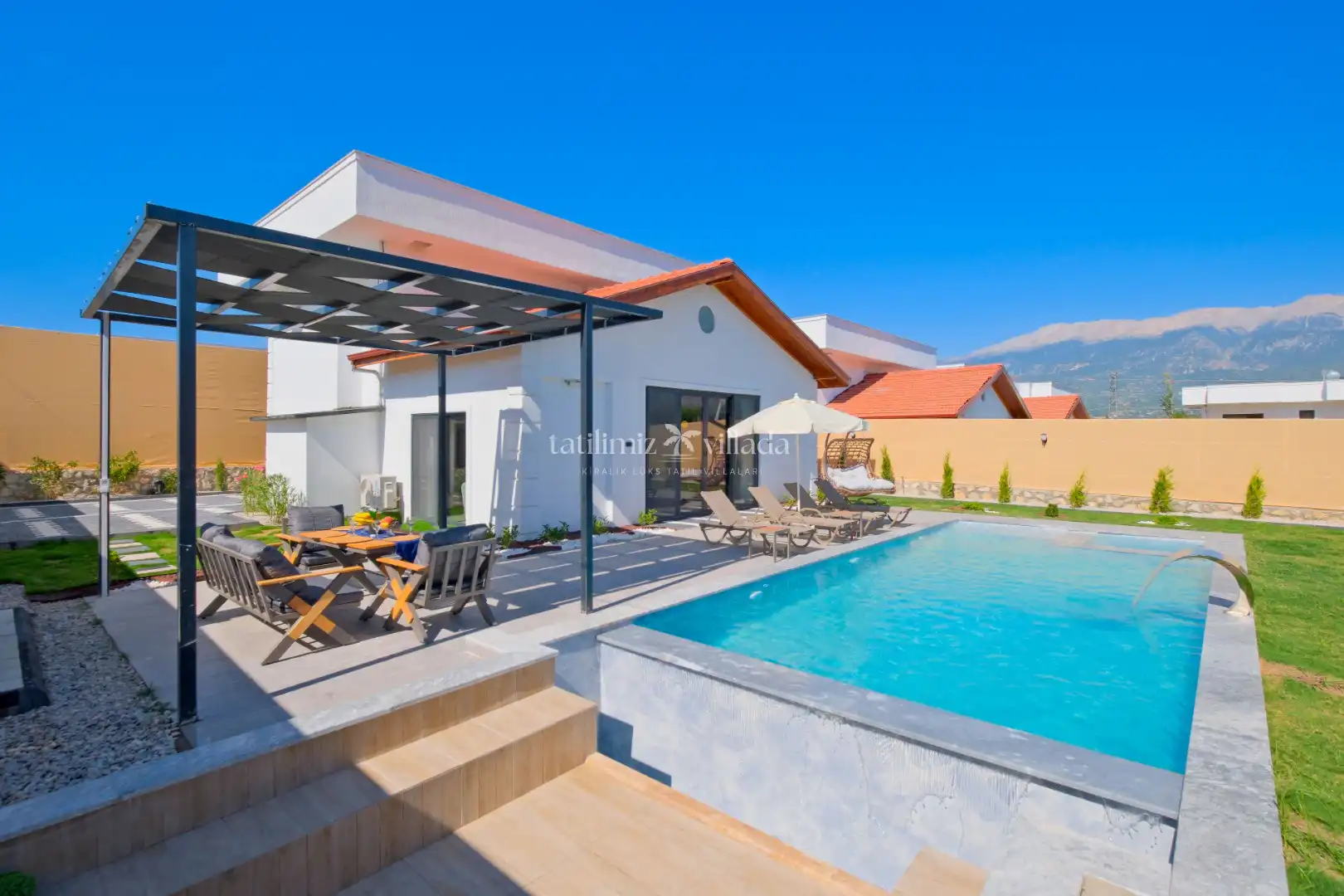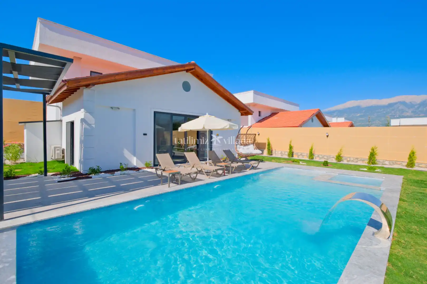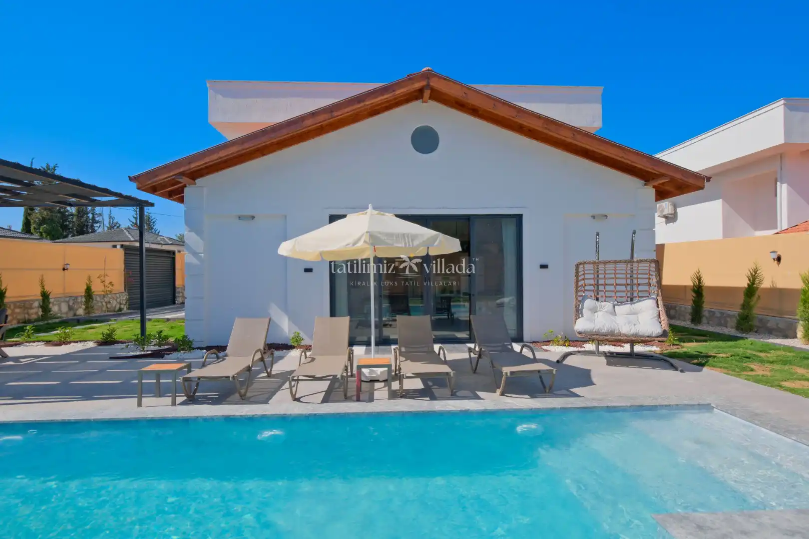 Villamızın geniş bahçe alanı ve özel yüzme havuzu sayesinde aileniz ve sevdiklerinizle birlikte keyifli vakit geçirebilirsiniz. Bahçe içerisinde bulunan barbekü alanı ile mangal keyfi yapabilir, açık havada sevdiklerinizle unutulmaz anlar yaşayabilirsiniz.